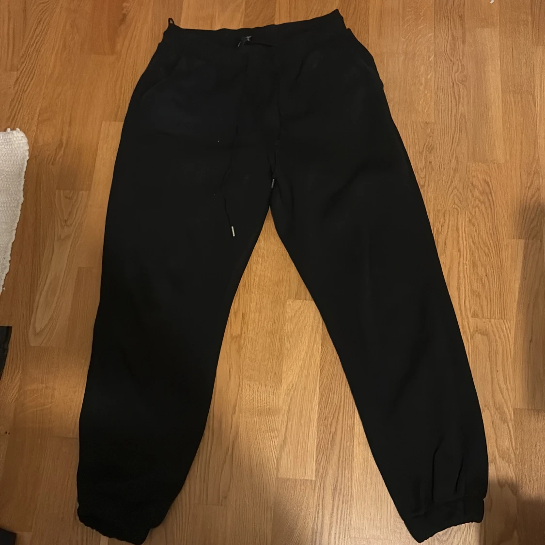 Svarta mjukisbyxor med resår i midjan och benslut samt snörning framtill. Perfekta för chill dagar eller när du vill ha det extra bekvämt. Klassisk passform och mjukt material.