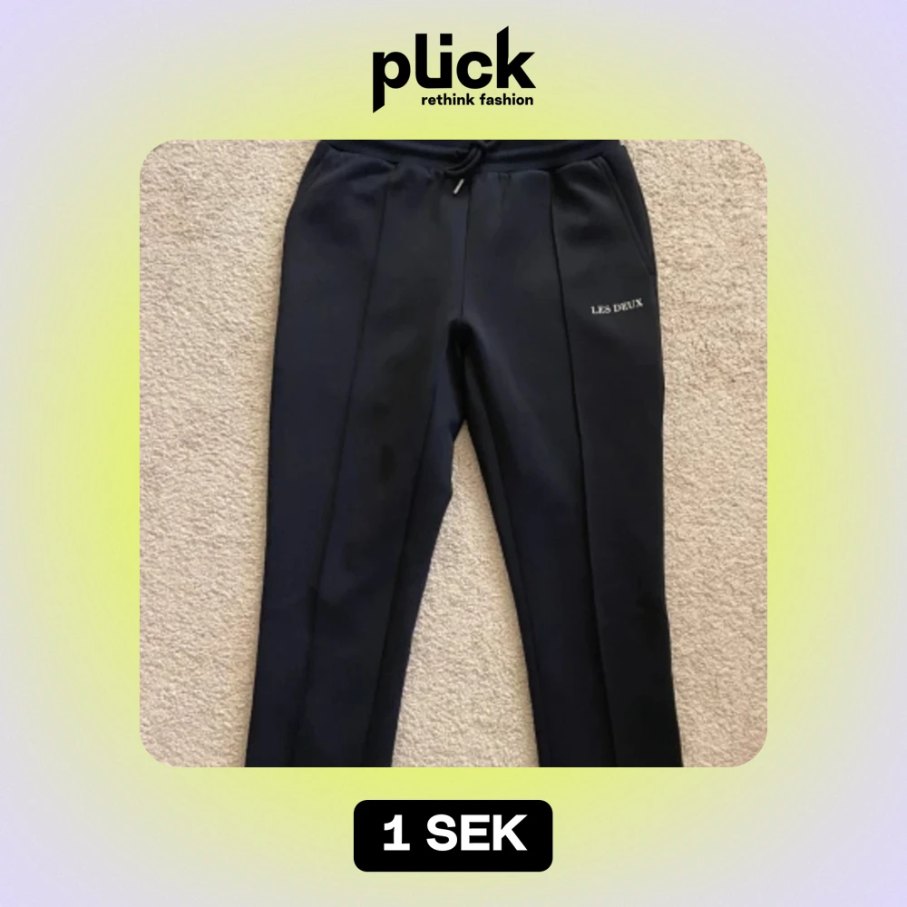 Säljer dessa oanvända Les Deux byxor då dem inte riktigt passar mig. Dem är mörkblåa och de silvriga detaljerna plus sömmarna på byxorna ger dem en väldigt snygg look. Storleken är XS. Kom med prisförslag.