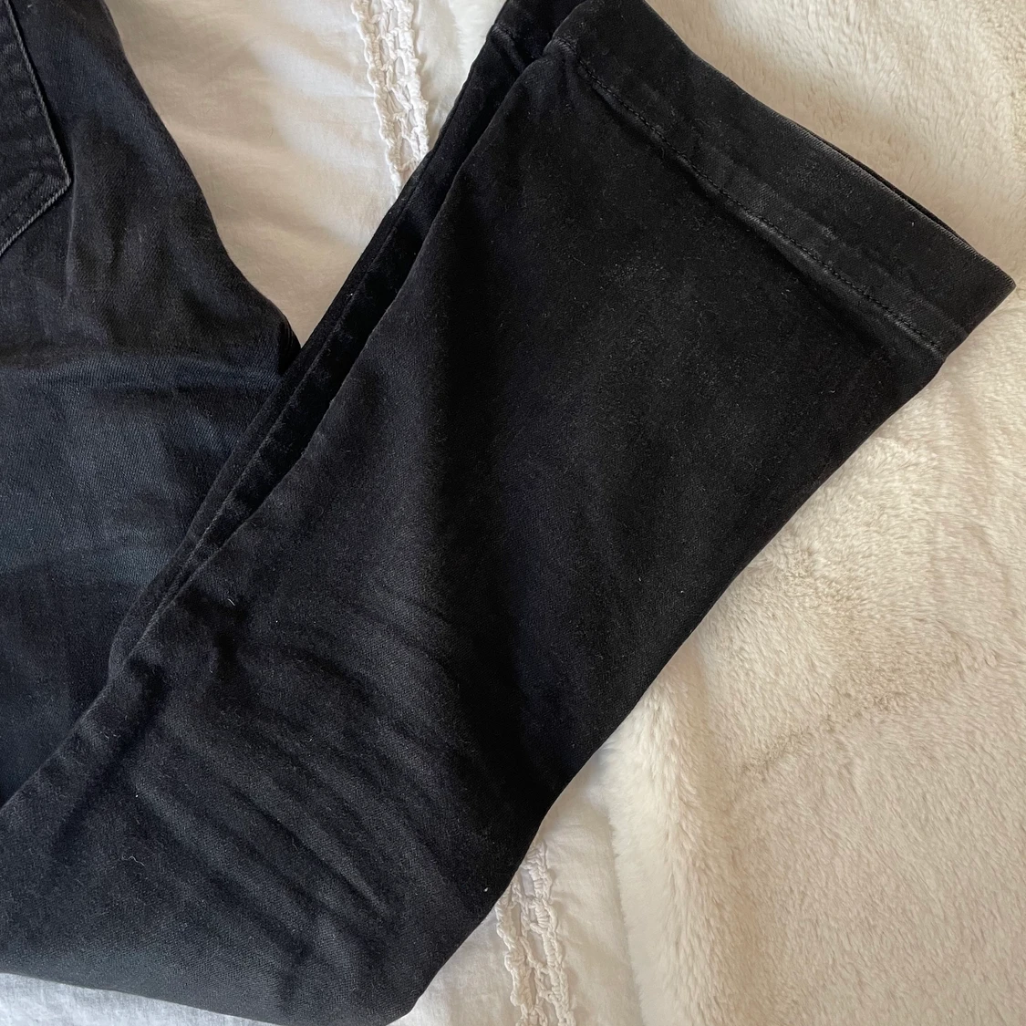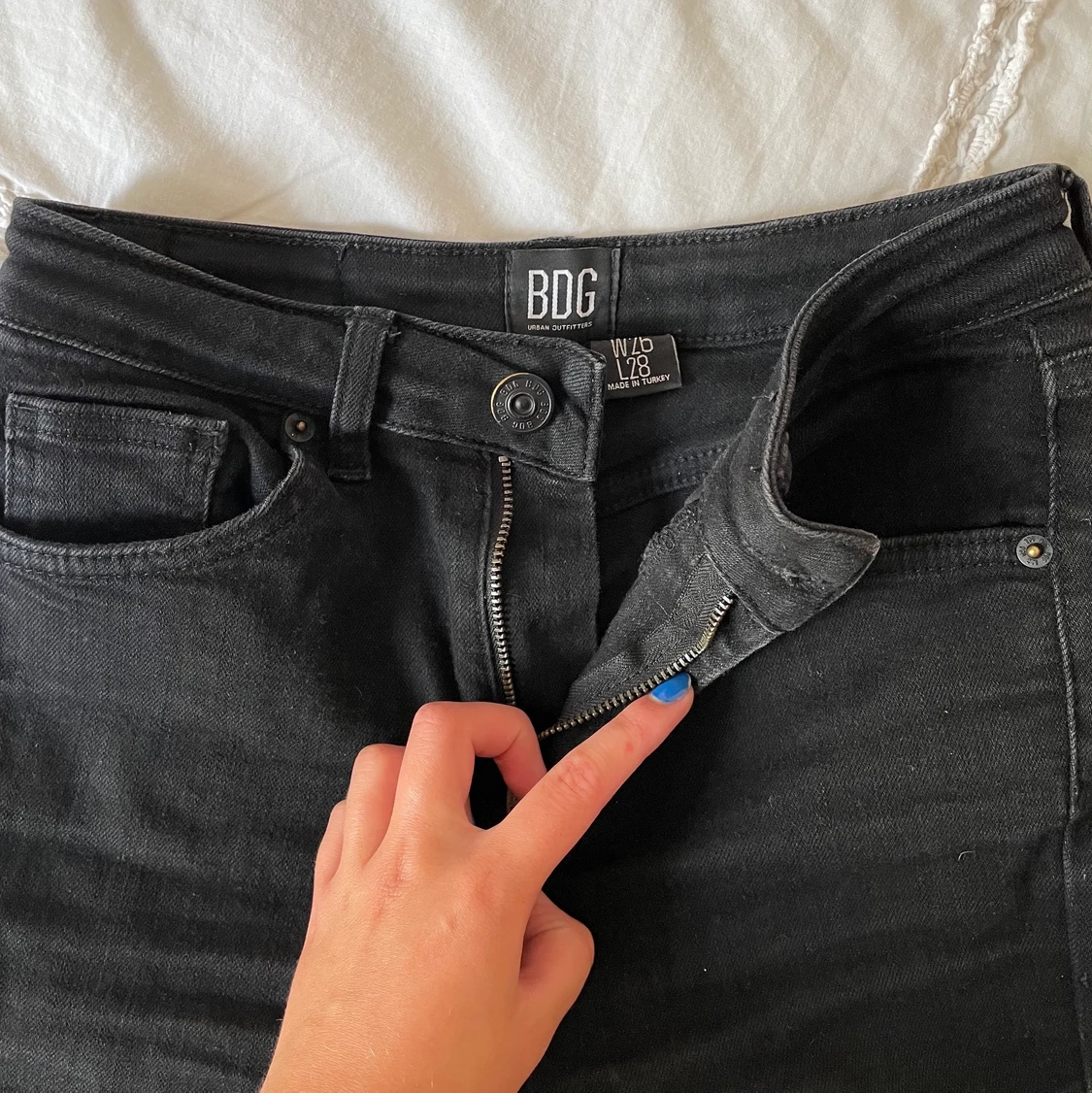 Svarta utsvängda jeans som är köpta på urbanoutfitters. BDG jeans med storlek 26 i midja och 28 i längd. Motsvarar 34/36 i storlek. Högmidjade.
