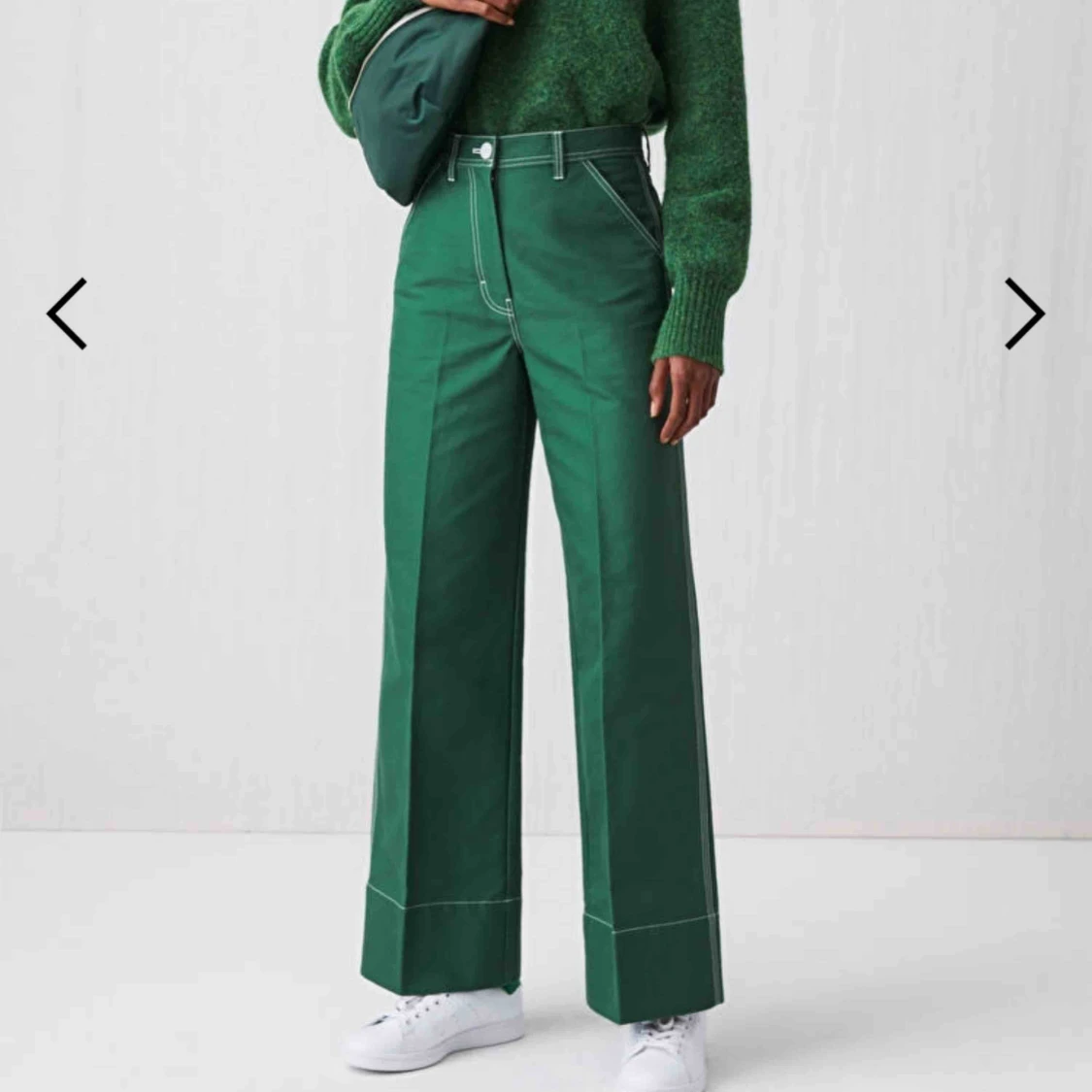 Snygga byxor från Arket, nästintill oanvända! Är rätt kort (163) så har vikt upp dom (sista bilden) istället för att ha dom som modellen. Nypris vad 790kr och dom är slutsålda på deras hemsida! Frakt på 50kr tillkommer 🌸🌸