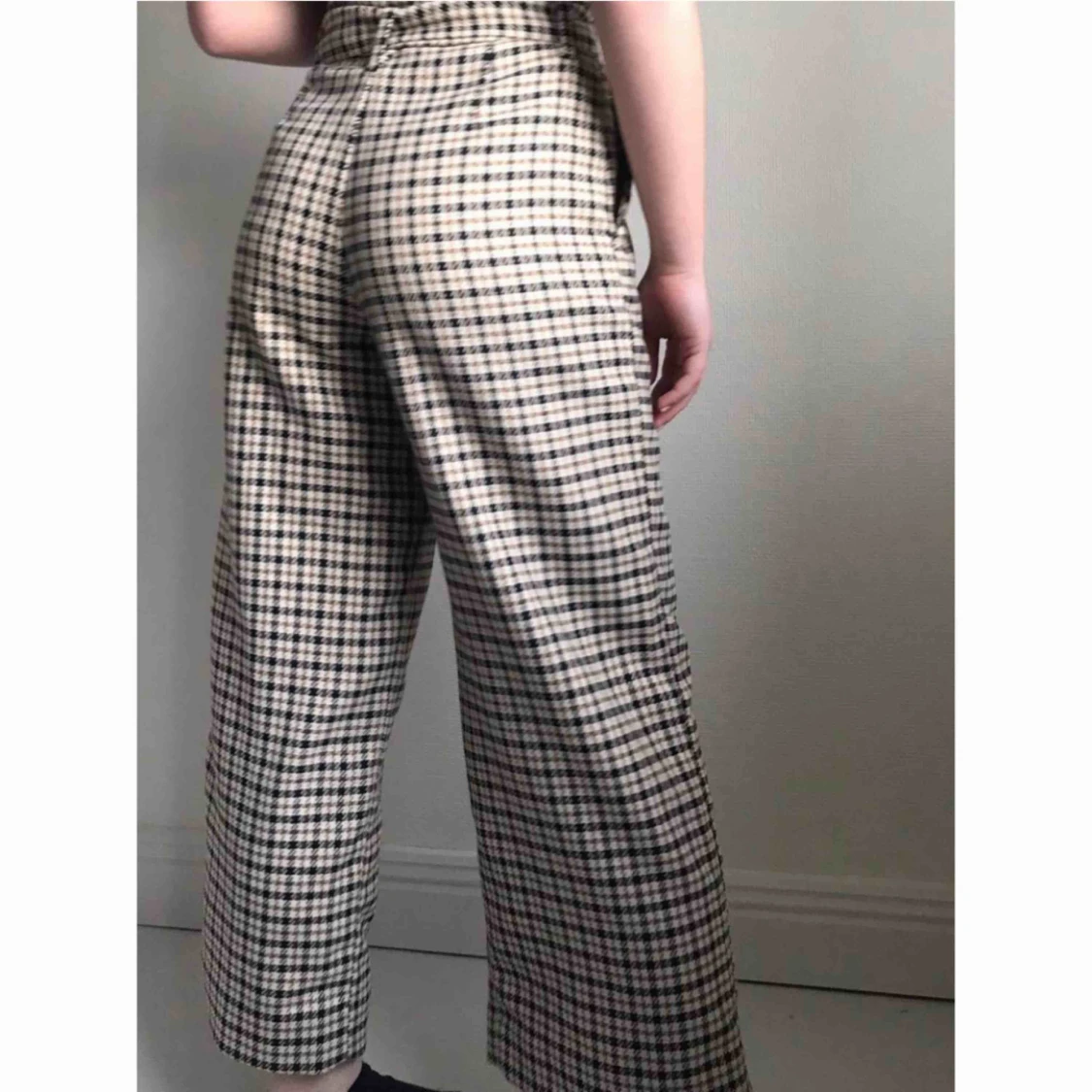 Vida byxor i skönt material som passar lika bra till både fest som vardag. Snyggt mönster och midjan blir justerbar med ”bältet”. Modellen är 160cm lång