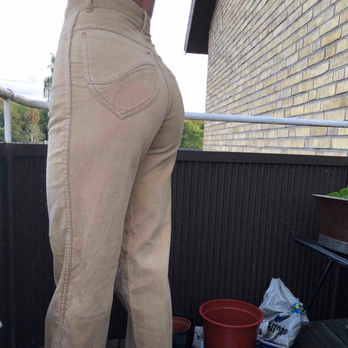 Ett par ljusa manchester byxor som är nästintill raka hela vägen till anklarna, använda ett fåtal gånger. Midjan är dock ganska smal