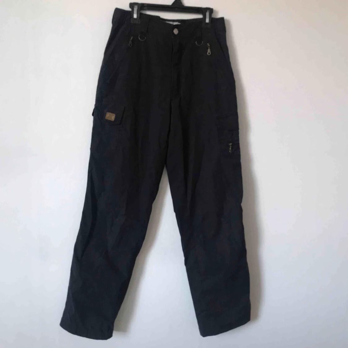 Sköna cargobyxor som tyvärr blivit för små. Fickor som stängs med kardborre och massa olika dragkedjor😍 Möts upp i Gävle eller fraktar för 72kr
