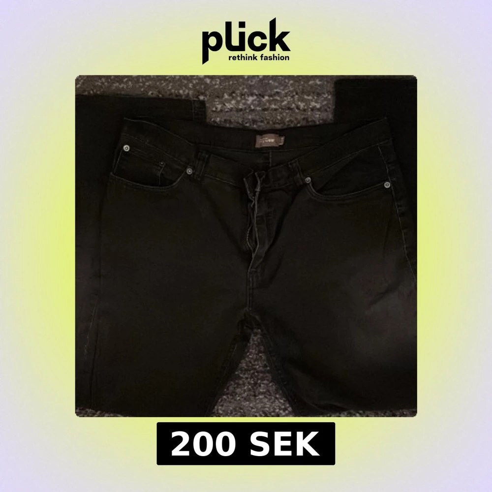 Svarta jeansbyxor från MyWear med klassisk femficksdesign. Byxorna är tillverkade i 98% bomull och 2% elastan för en bekväm passform. De har raka ben och bälteshällor, samt dragkedja och knapp framtill. Perfekta för en stilren och enkel look.