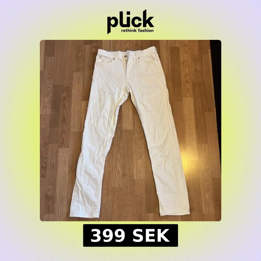Snygga vita jeans från Calvin Klein med diskret CK-detalj på fickan. Passar dig som är runt 180 lång. Tveka inte på att skriva ifall du undrar nåt!✨