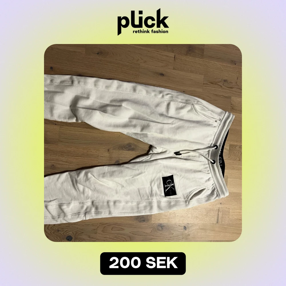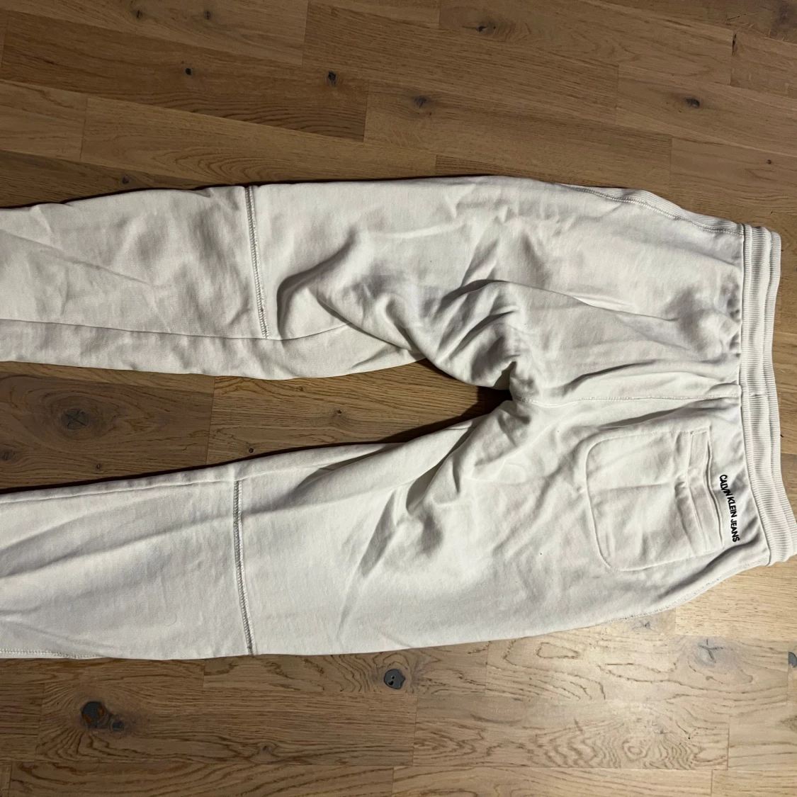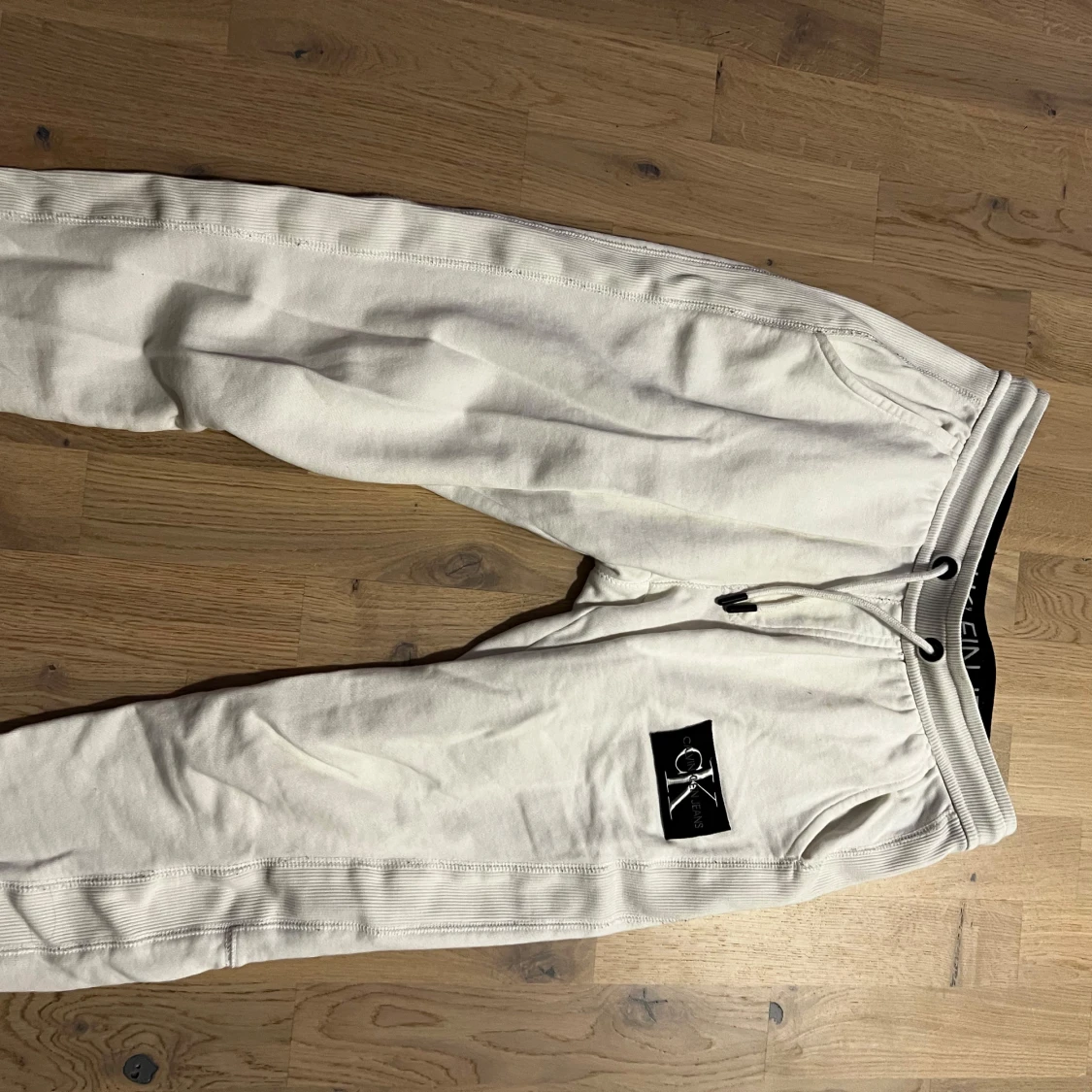 Säljer ett par vita mjukisbyxor från Calvin Klein i storlek S. Använda några gånger och i bra skick. Passar bra i längden på mig som är 1,70.