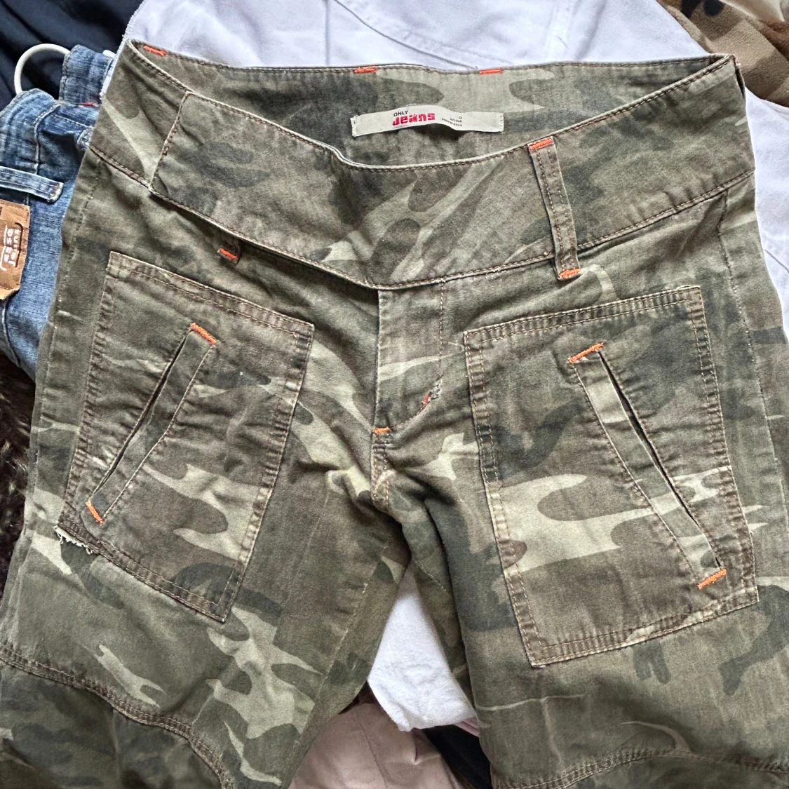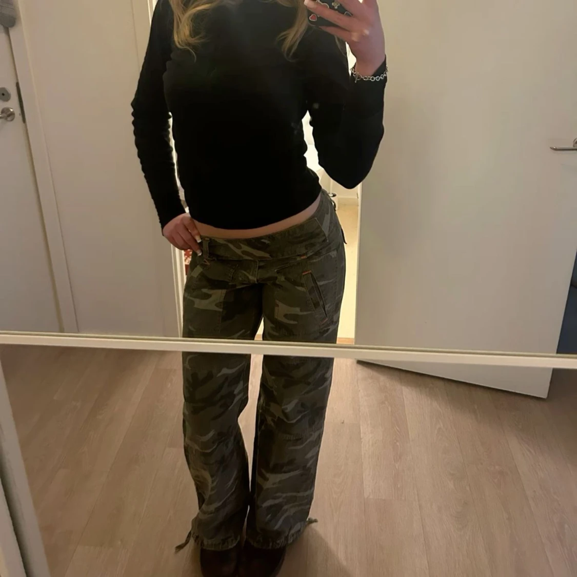Supersnygga camo byxor som tyvär inte kommer till användning💕 i storlek 38, midjemåttet är ca 44 cm och innerbenslängden är ca 83 cm.
