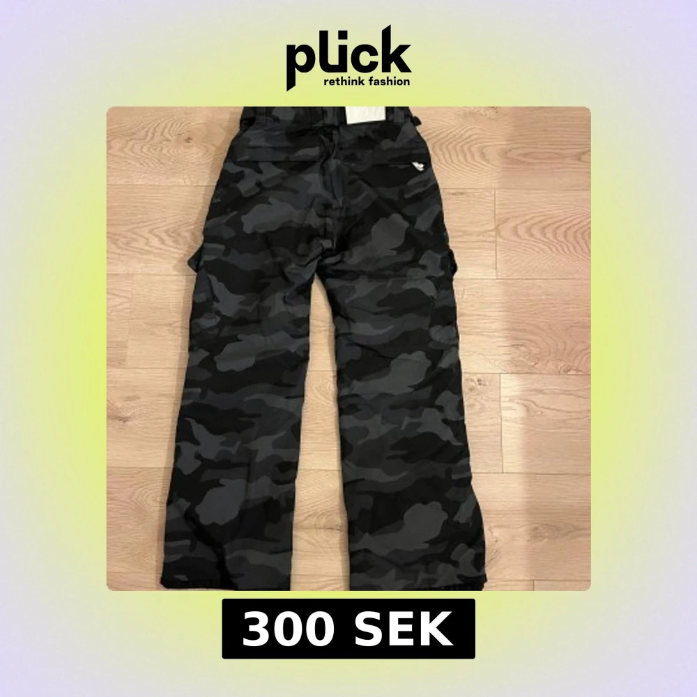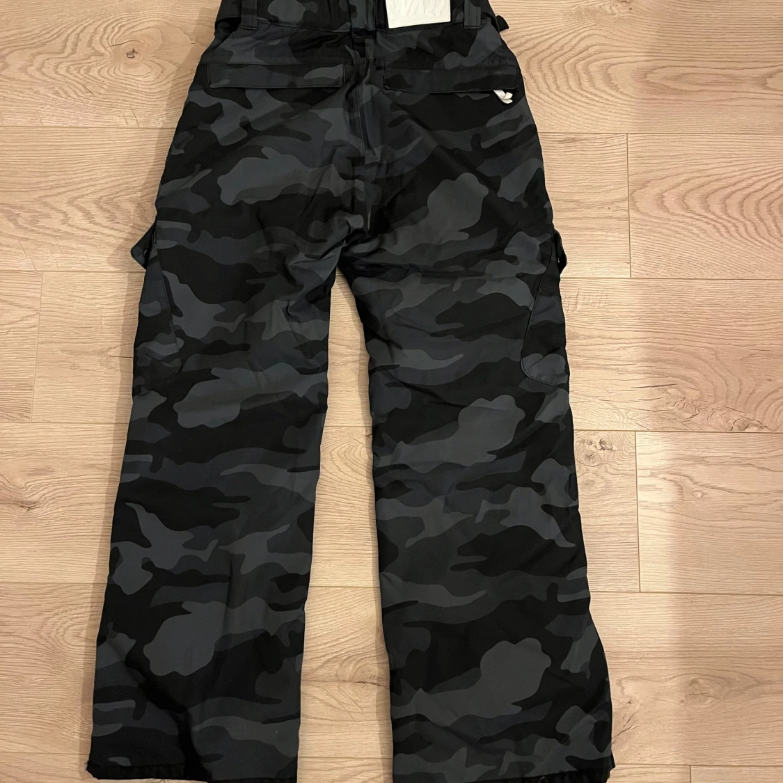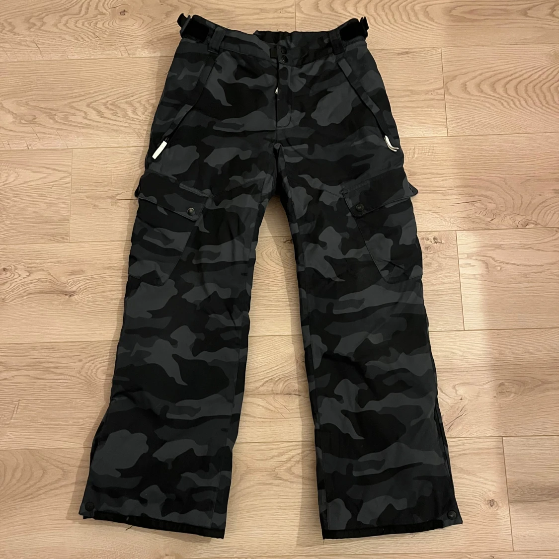 Snygga termobyxor / täck byxor i svart och grått camouflage. Byxorna har en loose passform med flera praktiska fickor och dragkedja. Perfekta för en avslappnad stil. Bra skick.