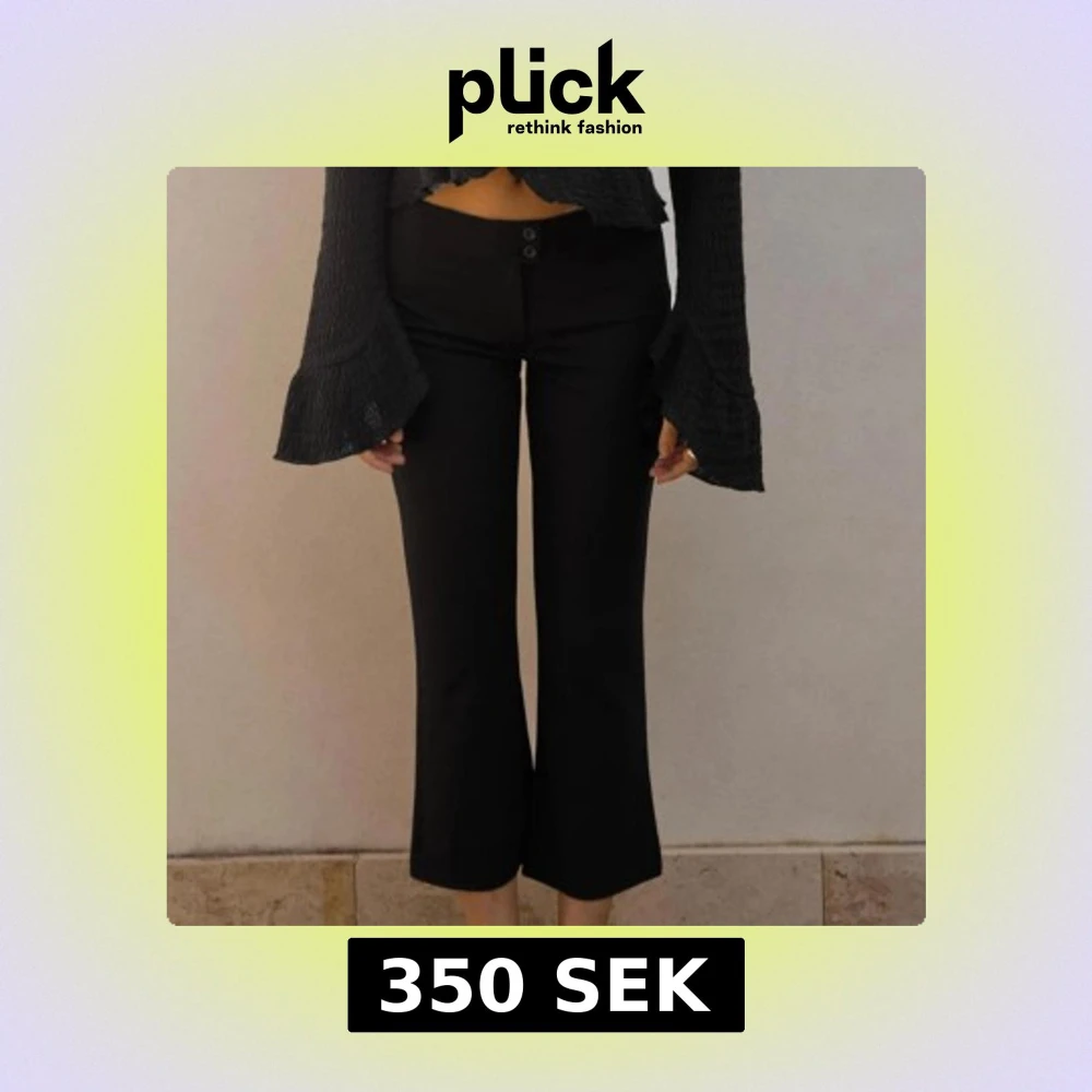 Snygga svarta byxor med croppad längd och bootcut-snitt. Superfina byxor som ger en stilren look. Oanvända och ligger fortfarande kvar i påsen de kom i. Storlek 40 men skulle säga att de är små i storleken, slutsåld storlek🩷 Nypris 400kr🩷