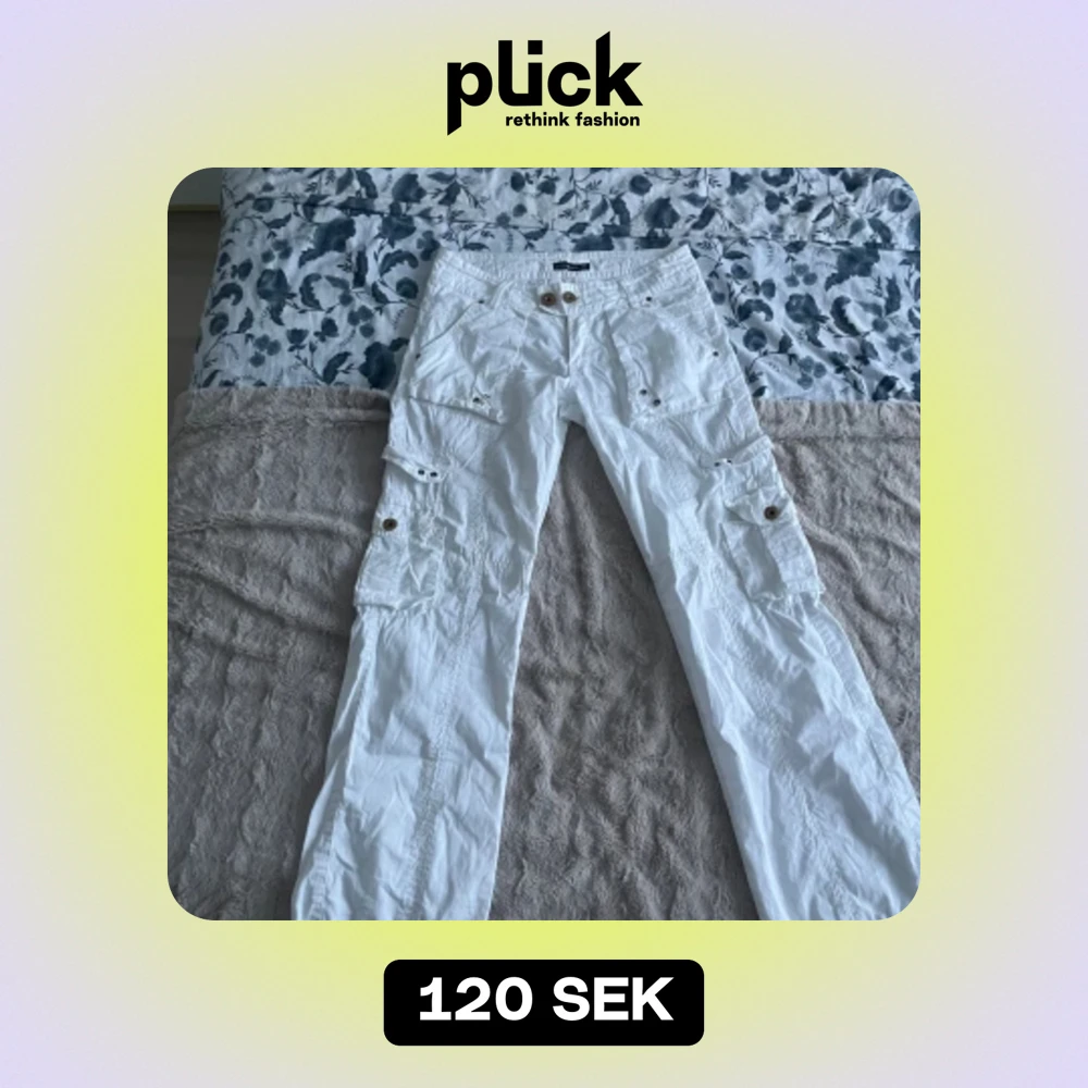 Brooker cargo byxor i vit färg. Storleken är 38 och är i perfekt skick förutom att en knapp saknas i baksidan. Skriv vid flera funderingar eller frågor!