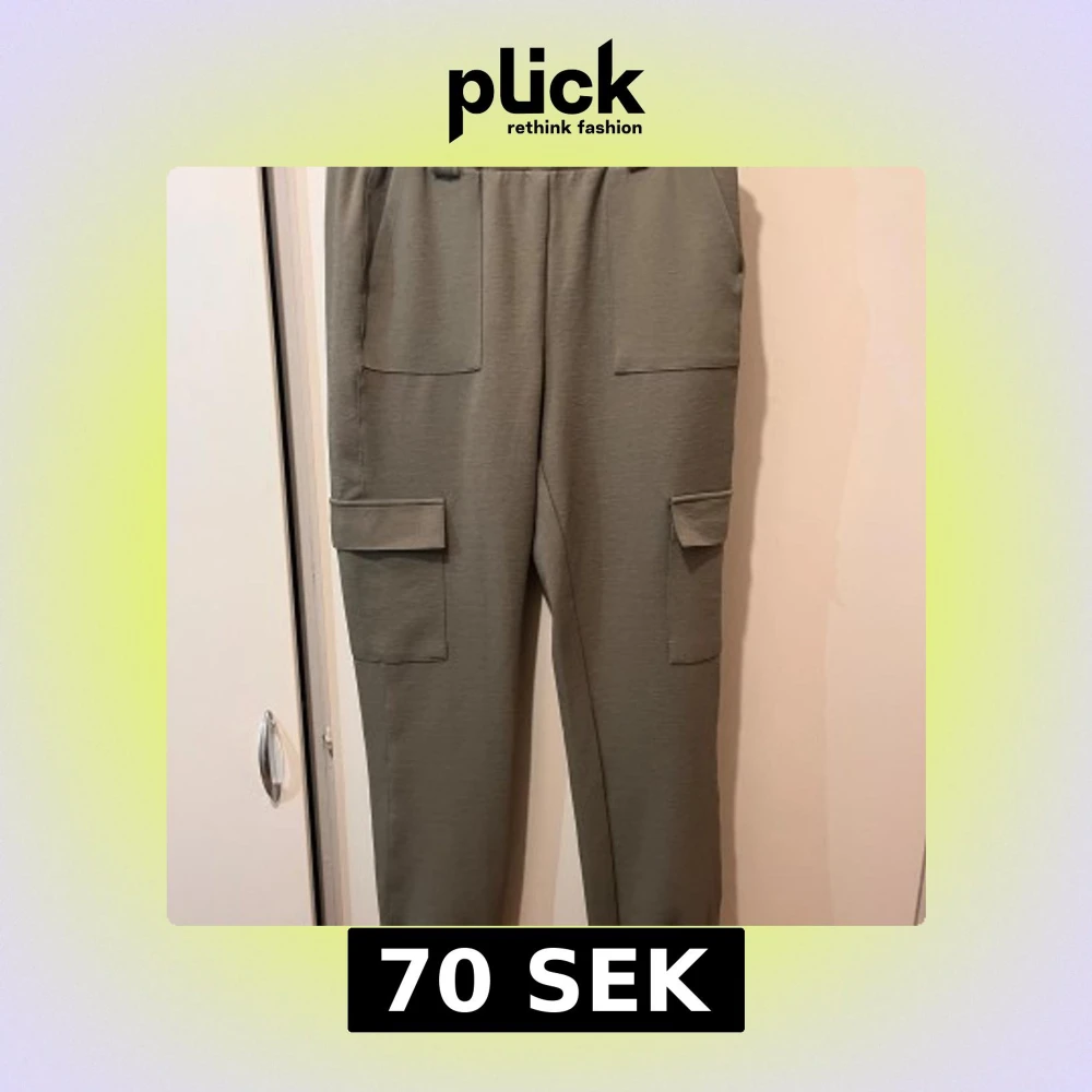 Cargo byxor i strl M. Köpt från Gina Tricot. Stretchigt material, lite högmidjade. Fickor på sidan. Mycket fint skick, endast använda en gång. Material: polyester och elastan