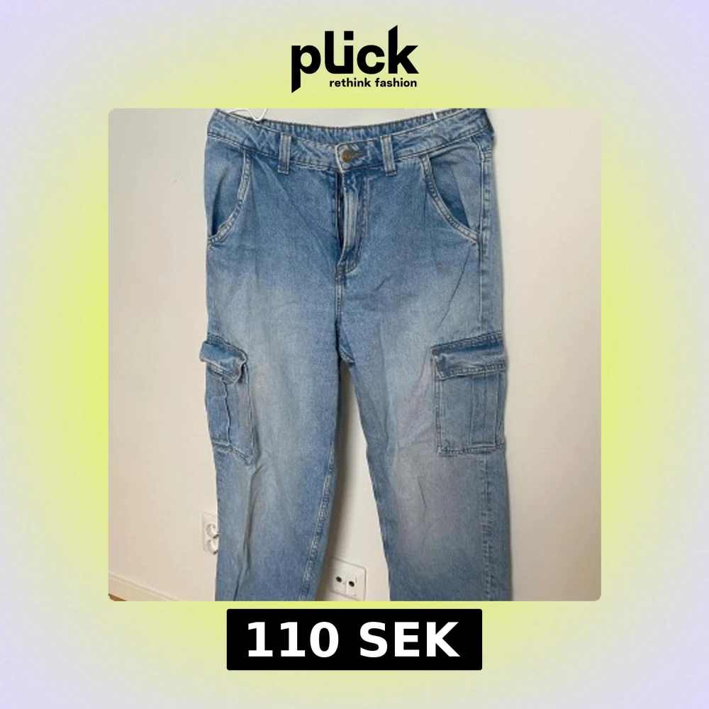 Säljer ett par ljusblå cargojeans från H&M i storlek 38. Går att fråga om prissänkning. Tvättas innan den skickas