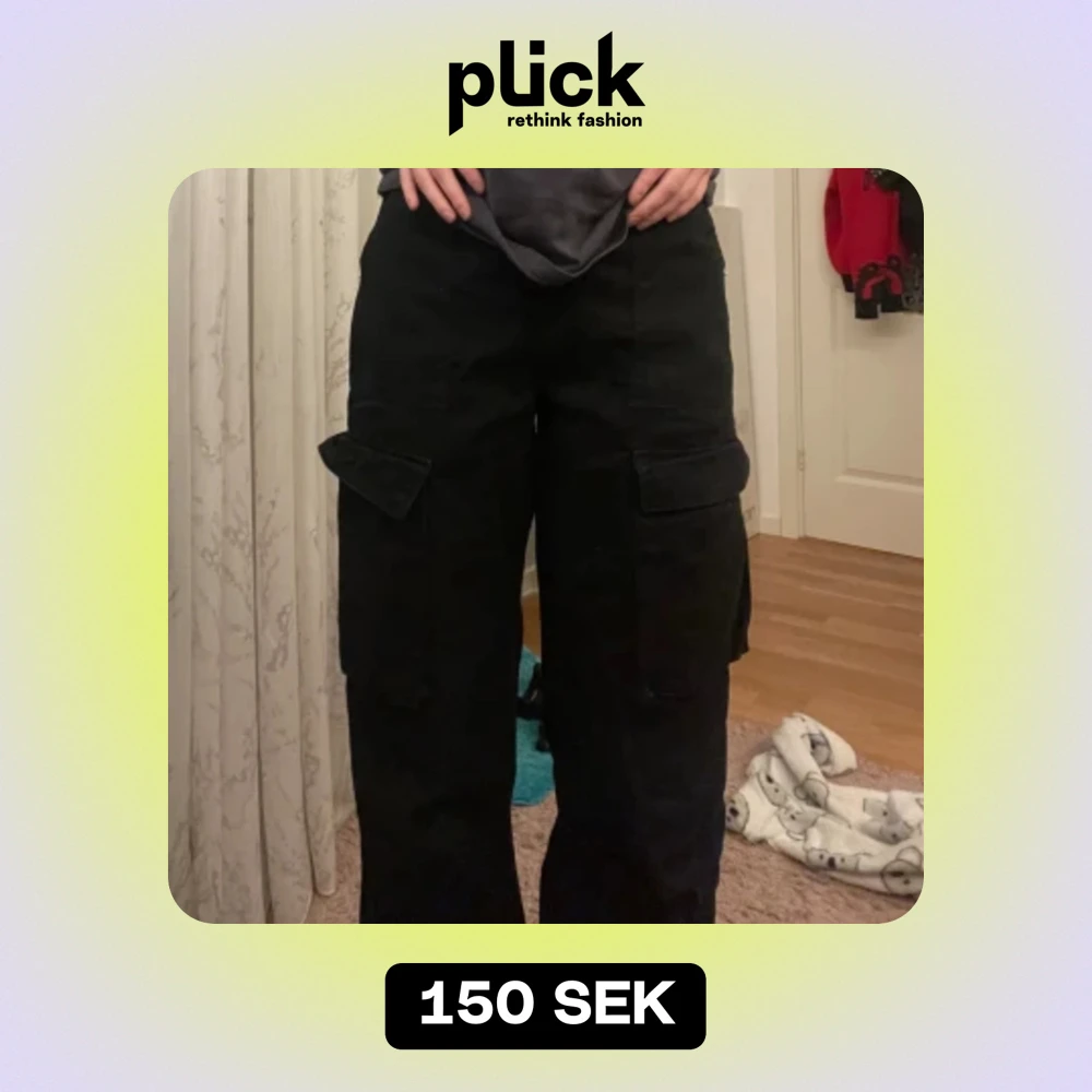 Midwaist cargo jeans i svart, andvändt dem mellan 3-5 gånger för två år sedan. Växt ifrån dem. Köpta för 450
