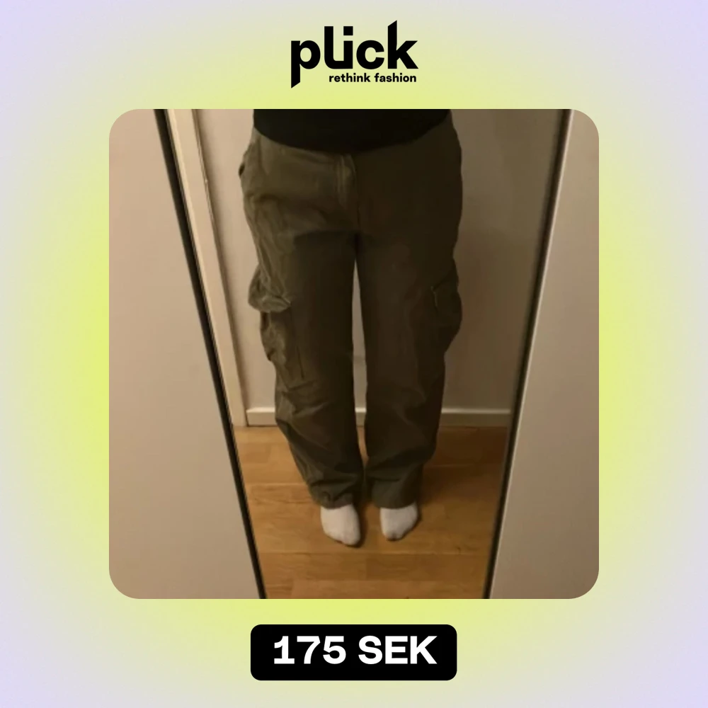 Gröna Cargobyxor i storlek 38 från Pull&Bear. Jag är 160 å de passar bra. Skulle säga att de passar från 155-165cm. Lite slitna längst ner men inget stort. Priset kan diskuteras.