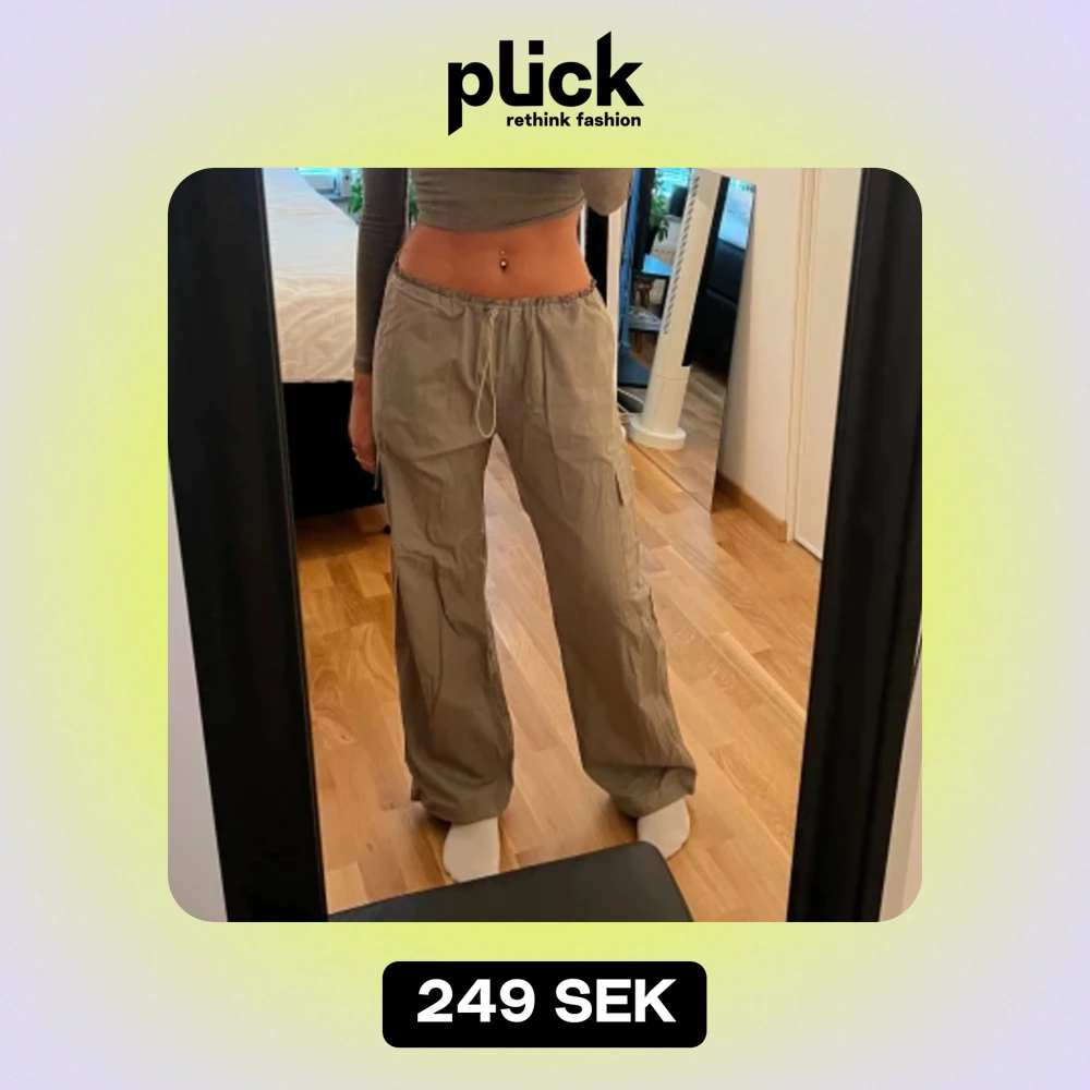 Jätte coola cargobyxor som aldrig använts. Gott skick, säljs ej längre. Grön/gråa och justerbara❣️