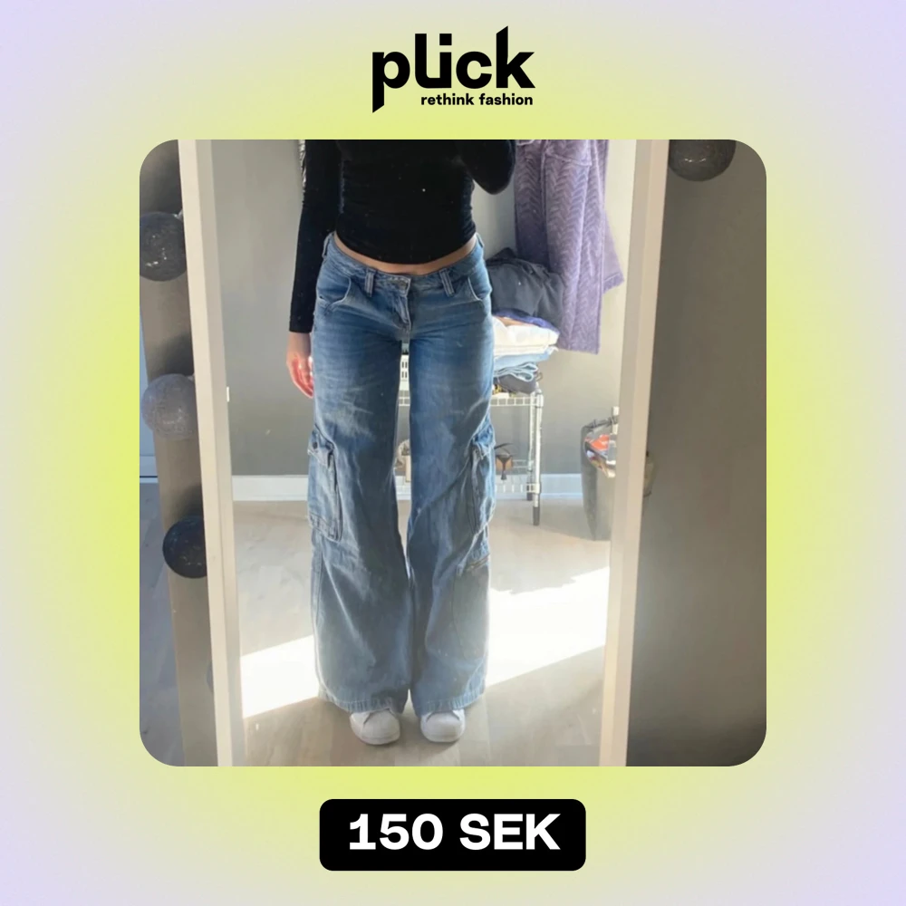 Säljer ett par snygga blå jeans från BDG Urban Outfitters. De har en loose fit och är högmidjade med cargofickor på sidorna. Perfekta för en avslappnad stil och passar till både vardag och fest.