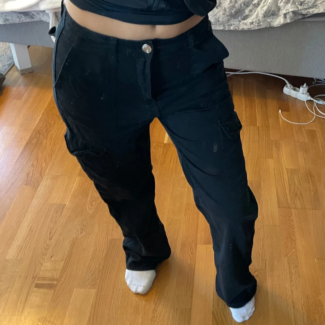 Super snygga cargo byxor från Zara. Aldrig använda. Funkar att ha som lågmidjade byxor.