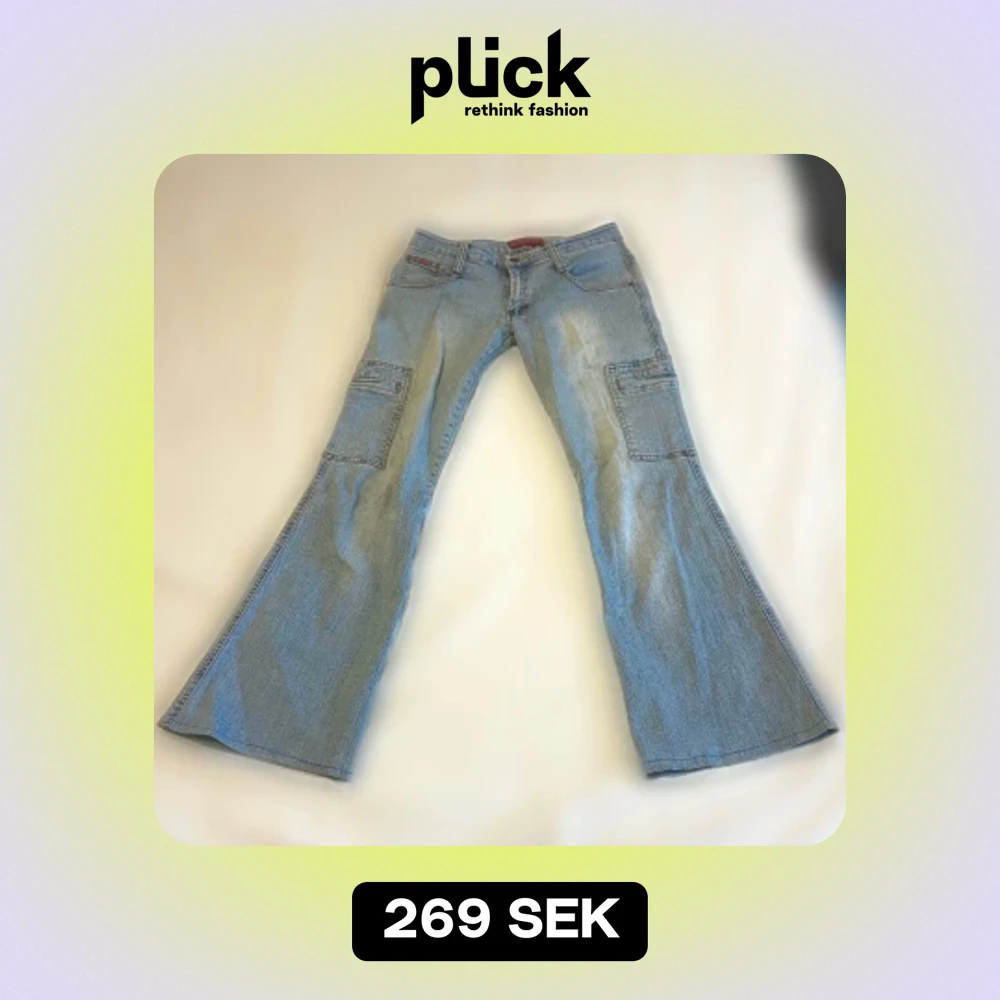 Midjemått, raktöver: 36,5 cm. Innerbensmått: 70,5 cm. Modellen på bilden är 157cm och byxorna är lite för långa. Byxorna är mid-waist