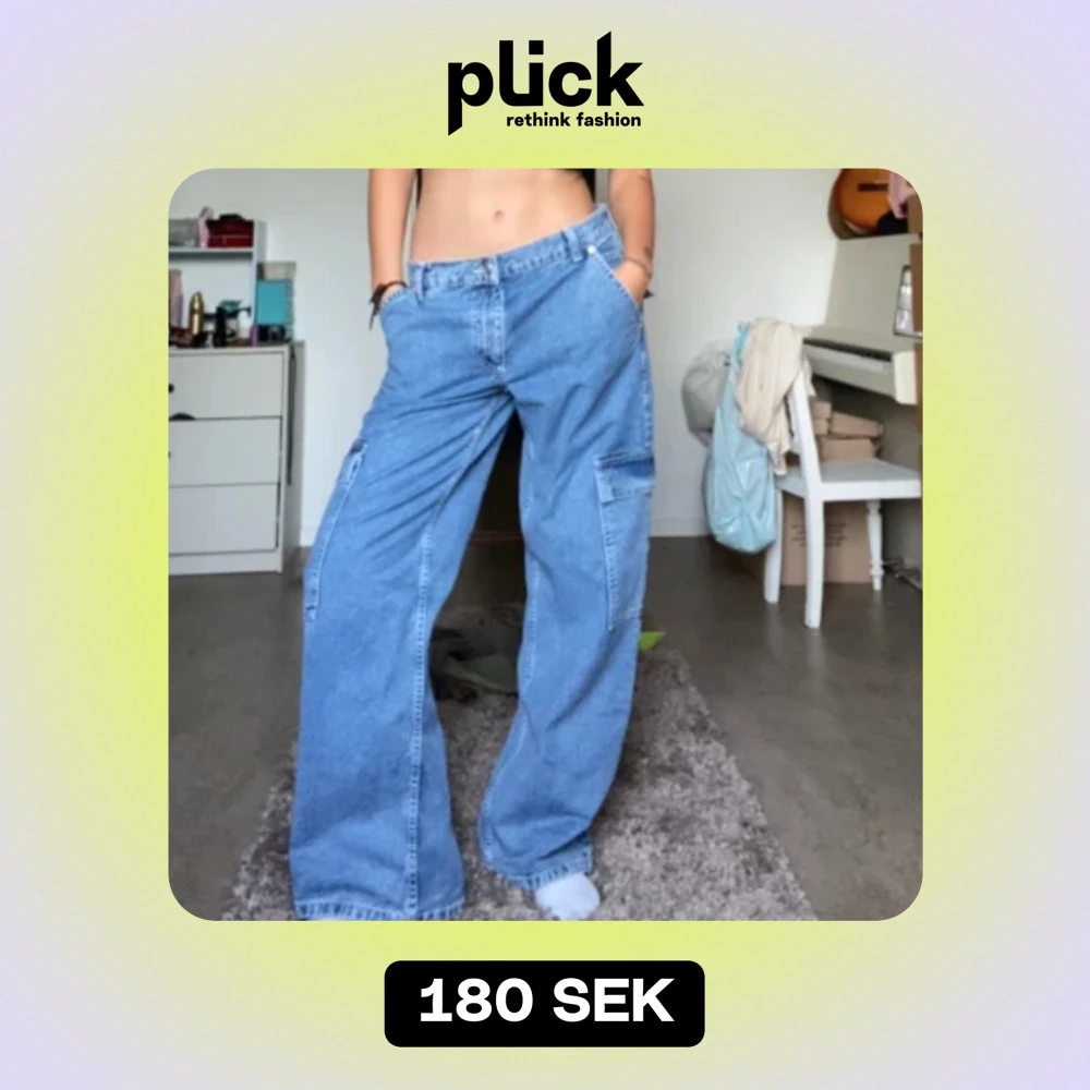 W28 L32. Cargojeans som är otroligt fina!! Lågmidjade och loose fit. Råkade beställa en storlek större än min egna tyvärr.