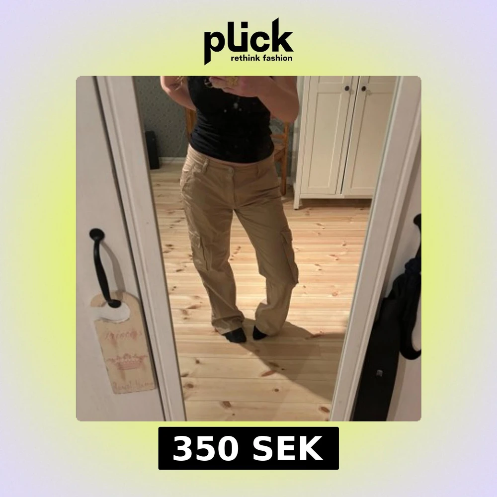 Supercoola beiga cargobyxor från Gina Tricot. De är normala i storleken och även i längden, och passar mig som är 164. Använda ett fåtal gånger. Köpta för 500kr.