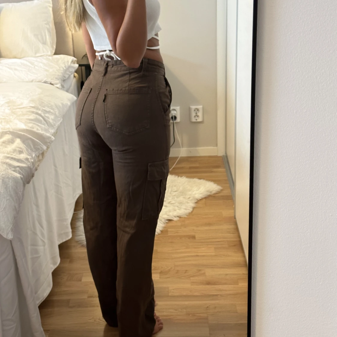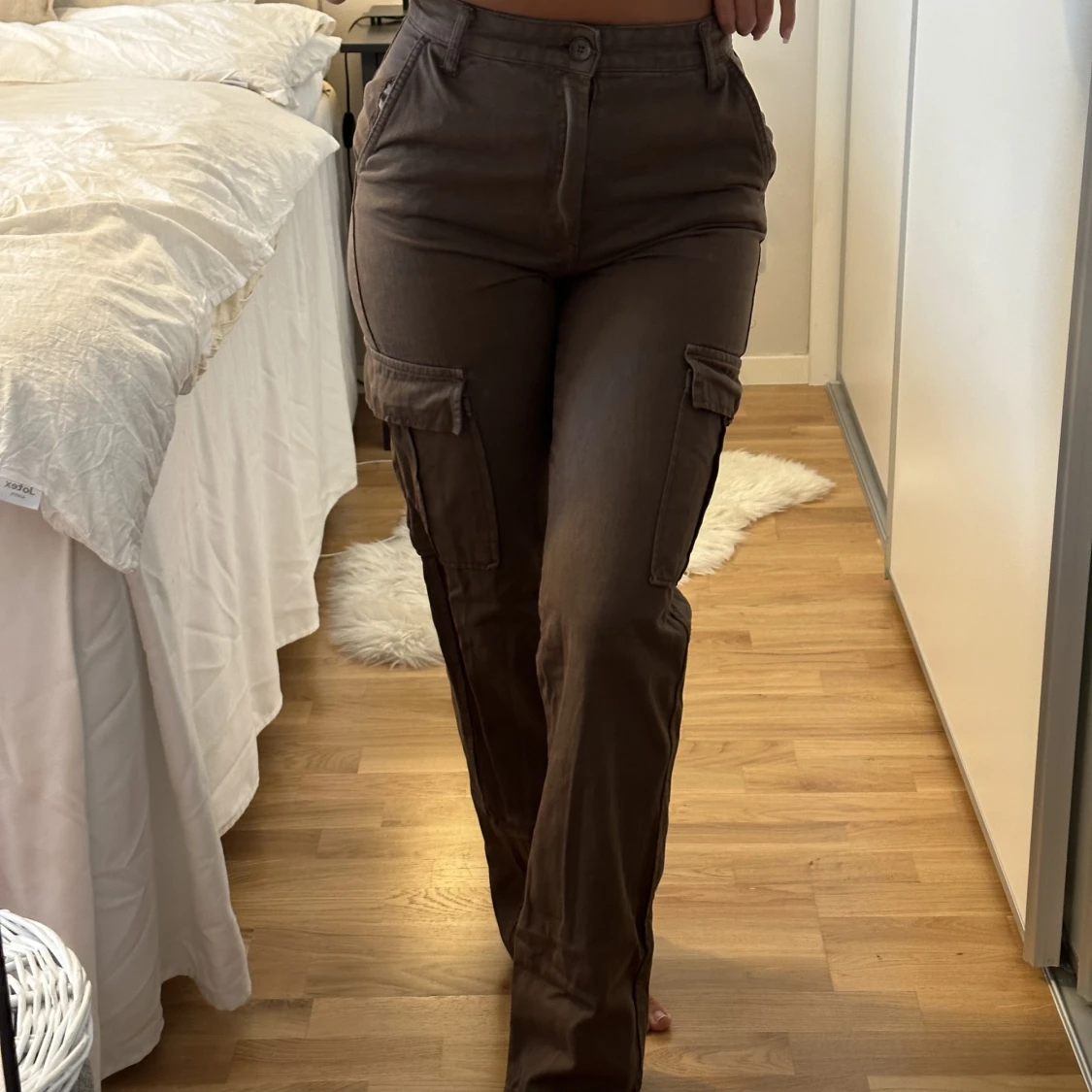 Så snygga bruna cargo byxor. Sitter perfekt i midjan. Använda ett fåtal gånger, och fortfarande i nyskick🥰