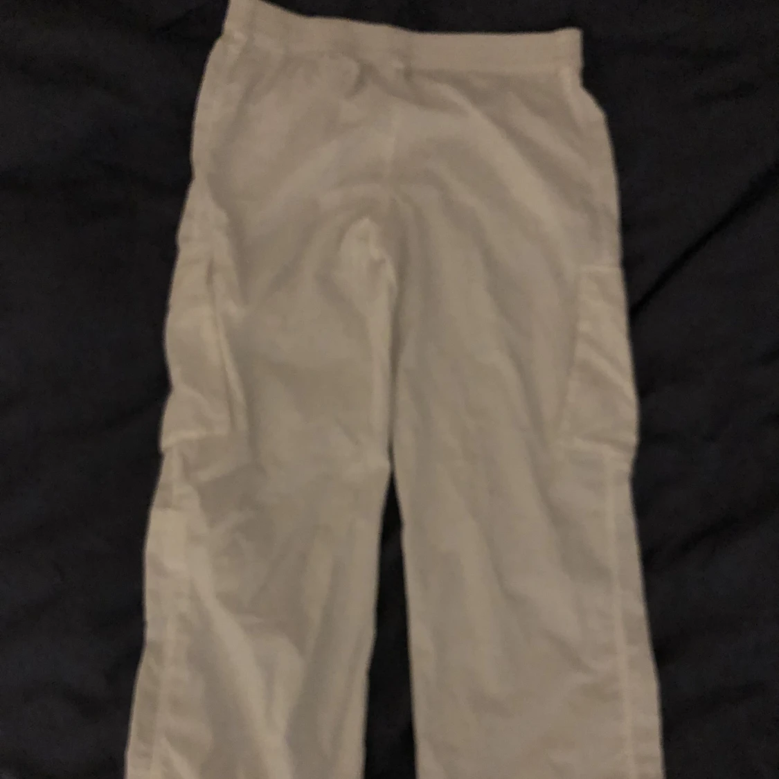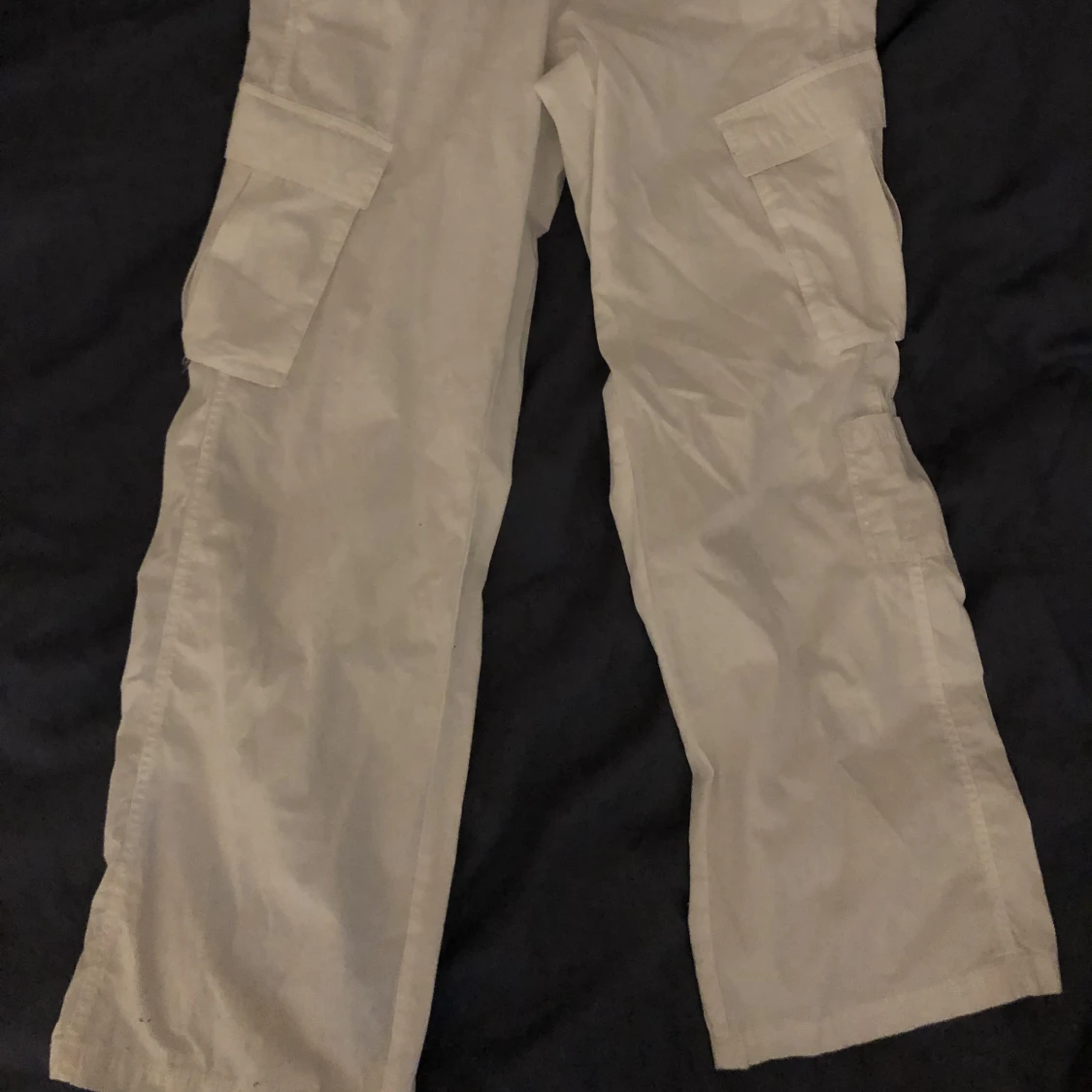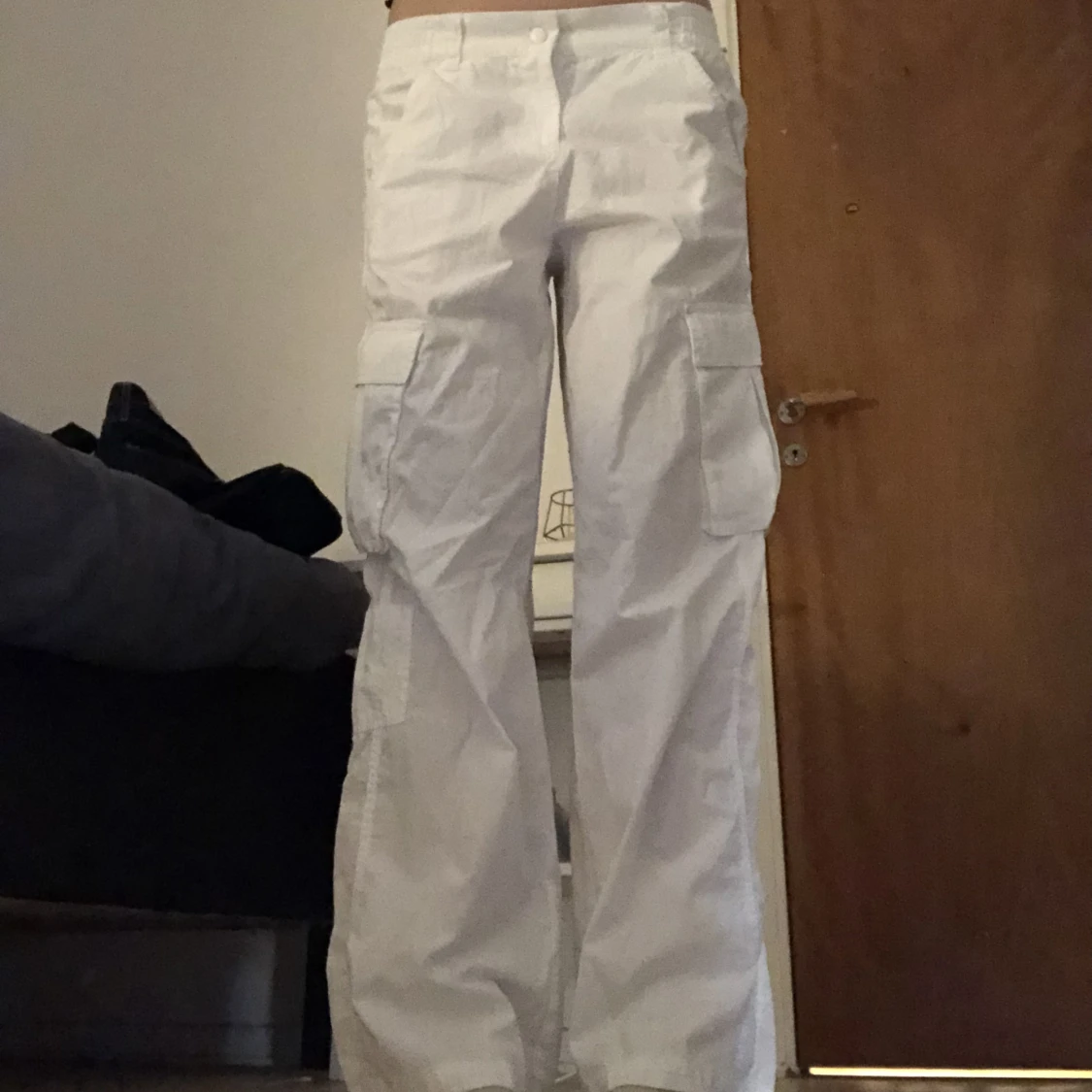 Lågmidjade, vita cargobyxor i storlek 40 men skulle säga att de är lite små i storleken! Aldrig använda och i toppskick. Köparen står för fraktkostnaden!🥰