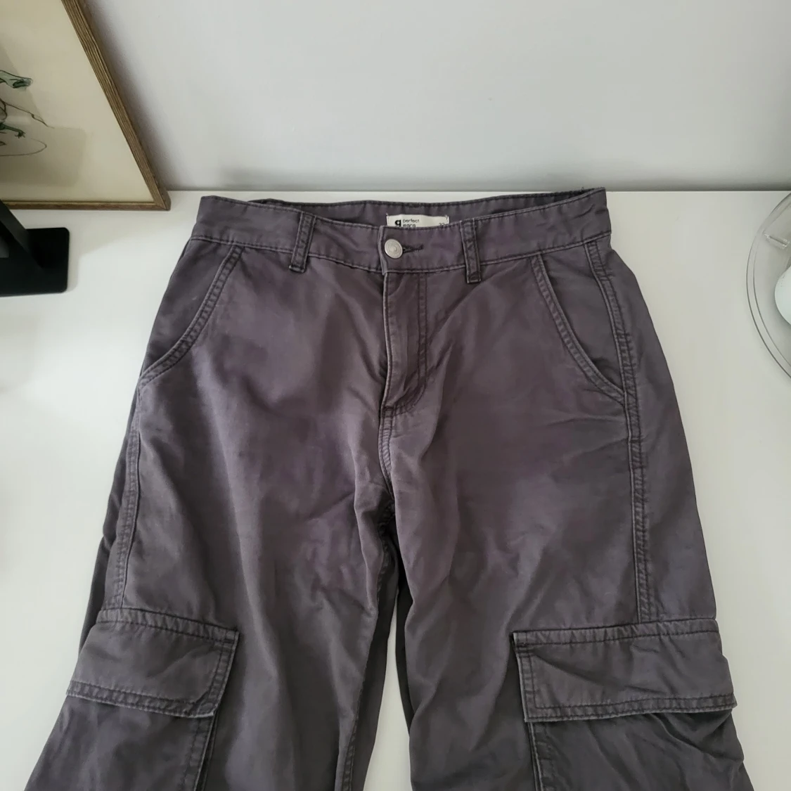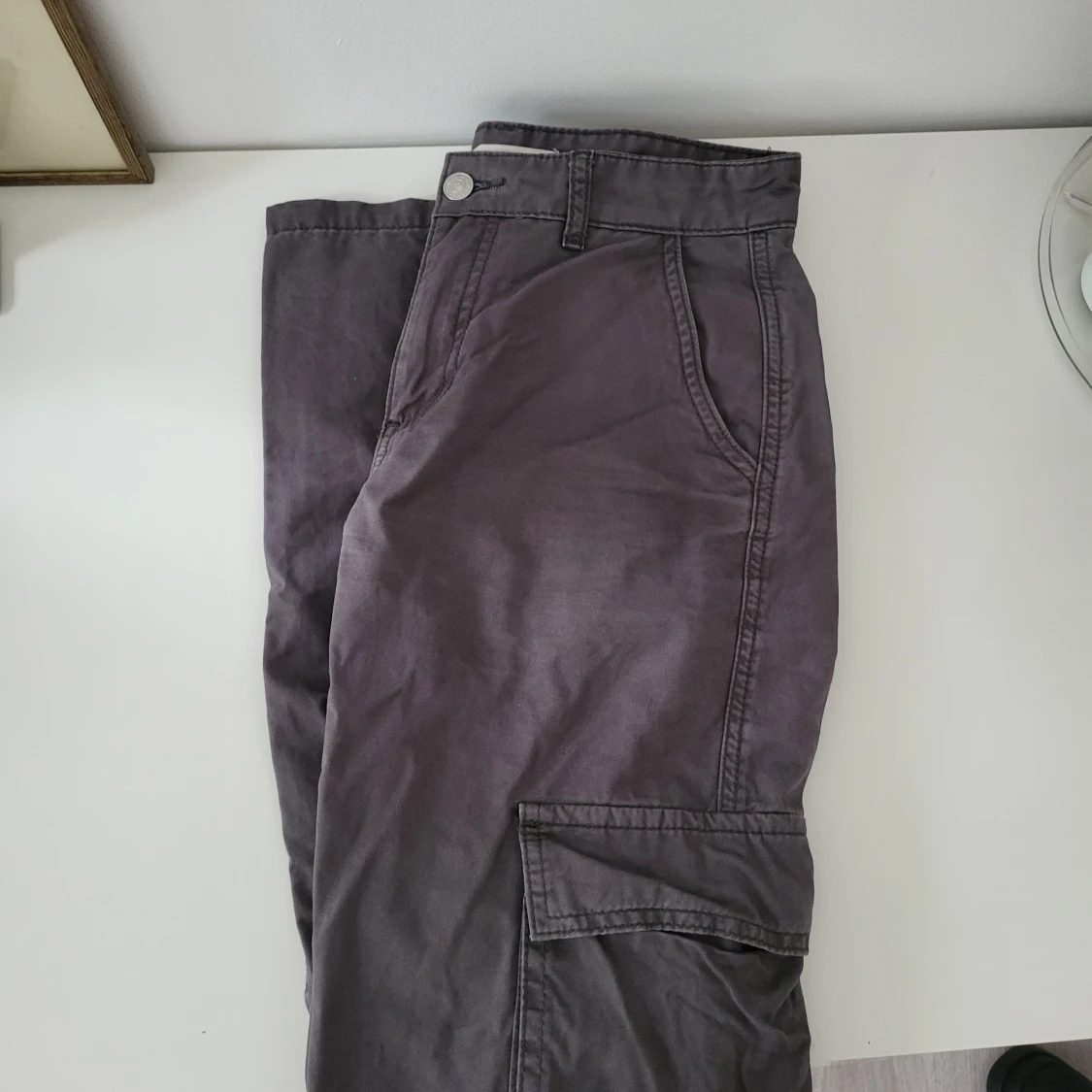 Fina fräscha mörkgrå cargobyxor för dam i storlek 32 finns möjlighet för bilder hur pqssfprmen ser ut on det behövs