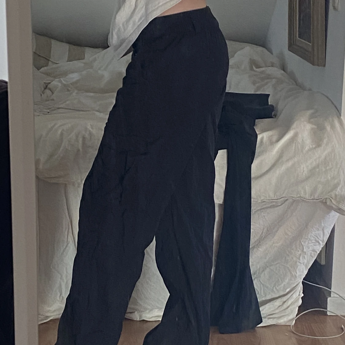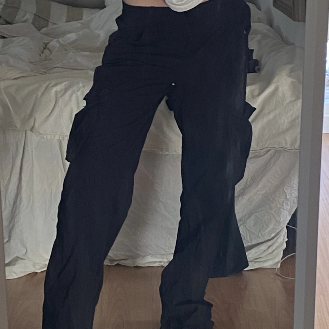 Lågmidjade svarta cargobyxor från HM, använda 1 gång, i storlek 34