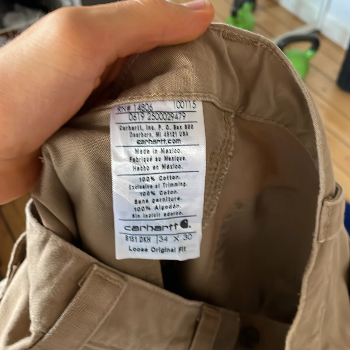 Bruna cargobyxor från Carhartt. Byxorna är i gott skick och har använts i ca ett halvår. Ordinarie pris var 899