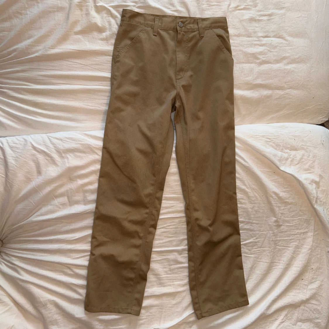 Beige/bruna carhartt byxor i storlek W28, L32. Säljer för att dom inte har kommit i så stor användning. Har endast användt dom 2 gånger och är som nyskick