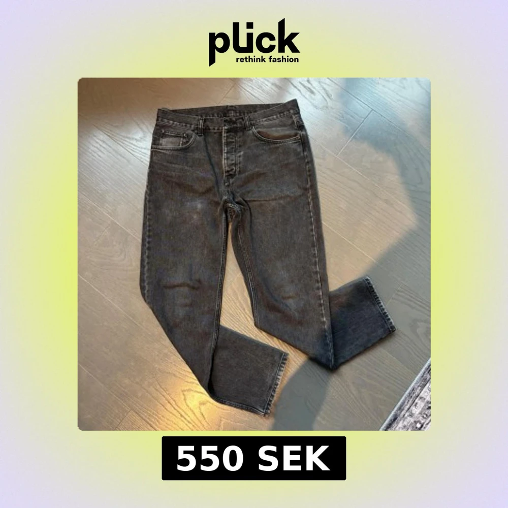 Säljer ett par svarta Carhartt Newel Pant i klassisk femficksmodell. Jeansen har rak passform, normal midja och är tillverkade i 100% bomull. Snyggt tvättad svart färg med diskreta slitningar och robust känsla. Perfekta för en avslappnad streetstil.