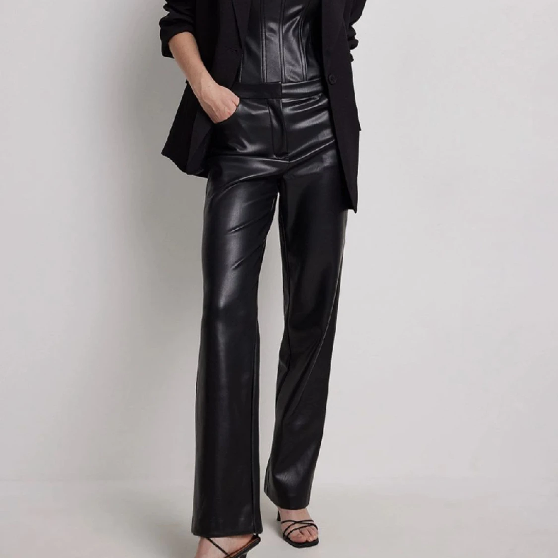 Säljer dessa skinnbyxor från nakds kollektion med ida carlsson som är kanppt amvända, jag är 177 och dom är långa men går inte hela vägen ner till backen på mig💓💓