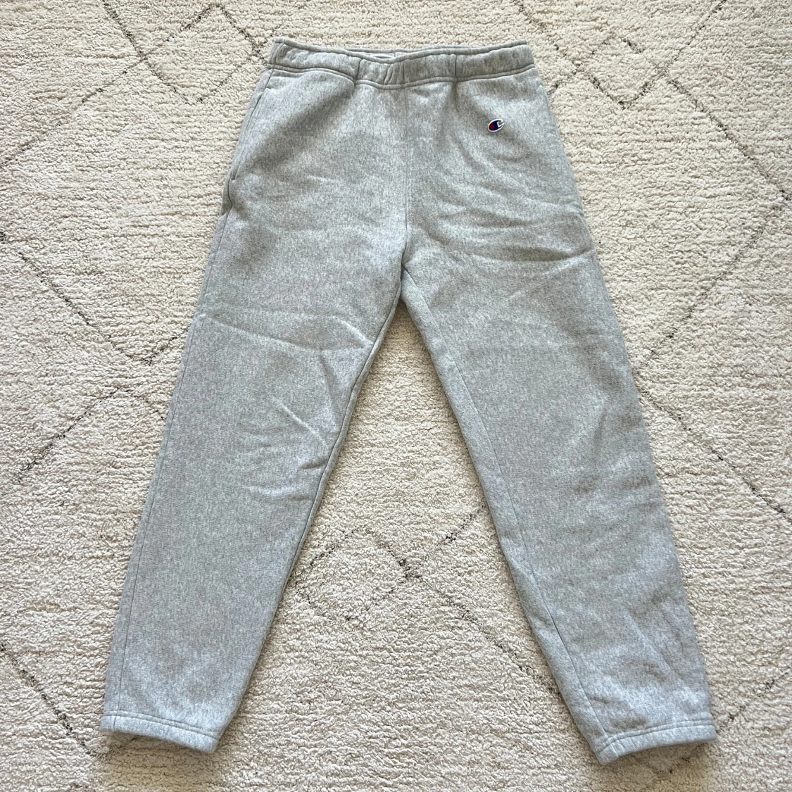 Gråa mjukisbyxor från Champion med klassisk logga broderad på vänster höft. Byxorna har resår i midjan och dragsko på insidan för extra komfort. Perfekta för chill dagar eller träning.