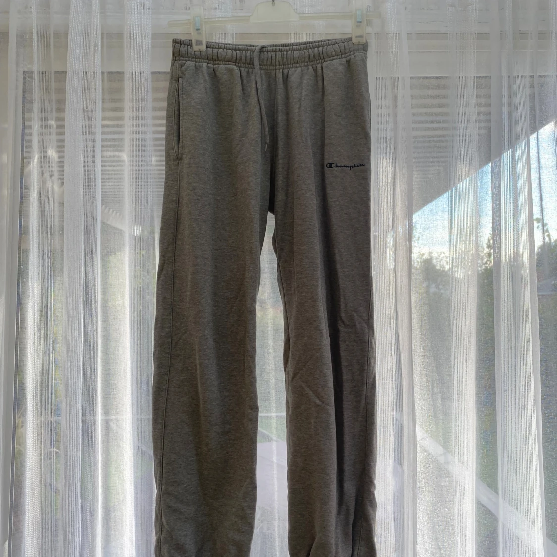 Gråa mjukisbyxor från Champion med elastisk midja och sidofickor. Byxorna har en avslappnad passform och är perfekta för chill dagar. Liten Champion-logga broderad på ena benet. Tillverkade i mjukt bomullsmaterial.