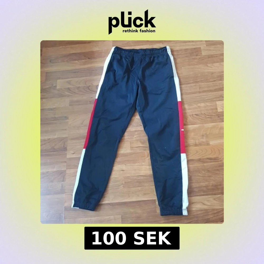 träningsbyxor från Champion med vita och röda paneler längs sidorna och logga på benet. Byxorna har resår i midjan och benslut, samt är gjorda i polyester .