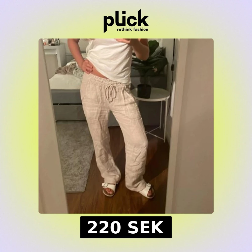 Säljer ett par beiga linnebyxor från Chelsea. Byxorna har raka ben. Lätta och luftiga, perfekta för varmare dagar.