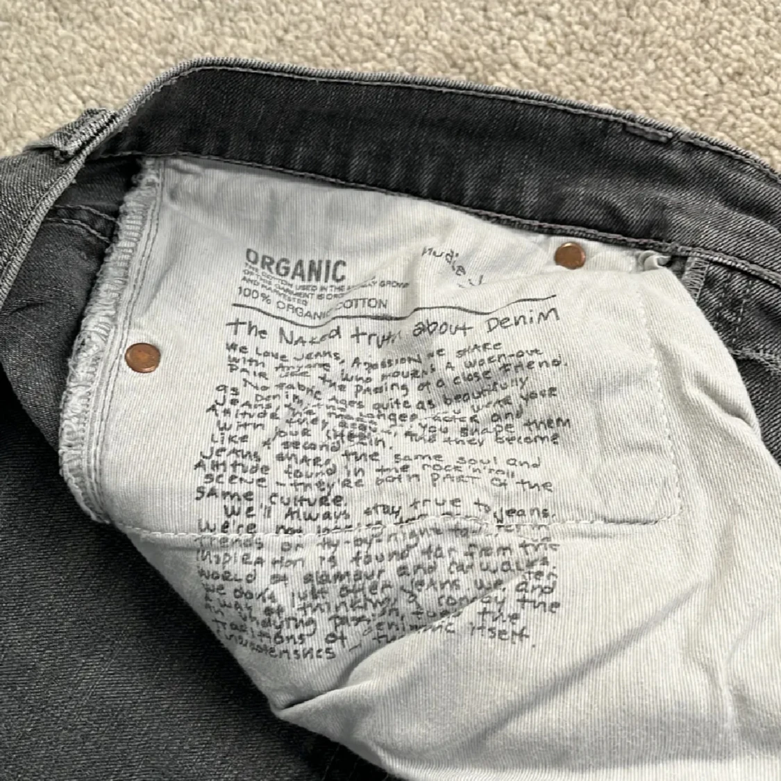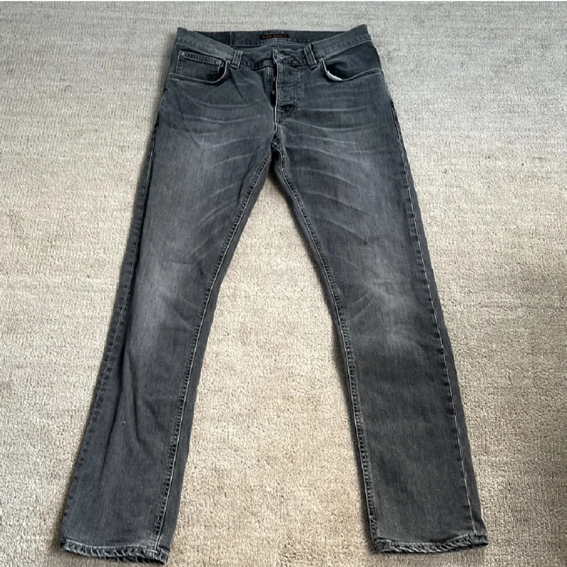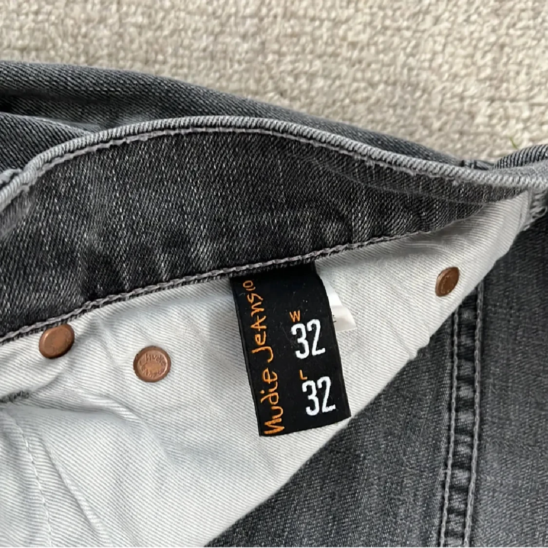 Tja! Säljer nu dessa feta Nudie Jeans! De är i riktigt bra skick, skulle säga 9/10, eftersom denne knappt använda! Storleken är W 32 och L 32. Nypris: 1499kr‼️❌ Mitt pris: 499kr✅ Skriv gärna vid fler frågor och pris kan diskuteras!🤝