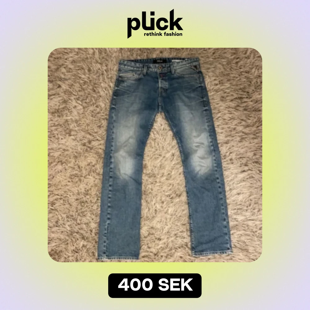 Replay Jeans modell Waitom Storlek 31/32 helt okej skick alla slitningar är design förutom längst ned på byxan. Tveka inte att höra av dig vid intresse Mvh Elias🙌🏼🤩
