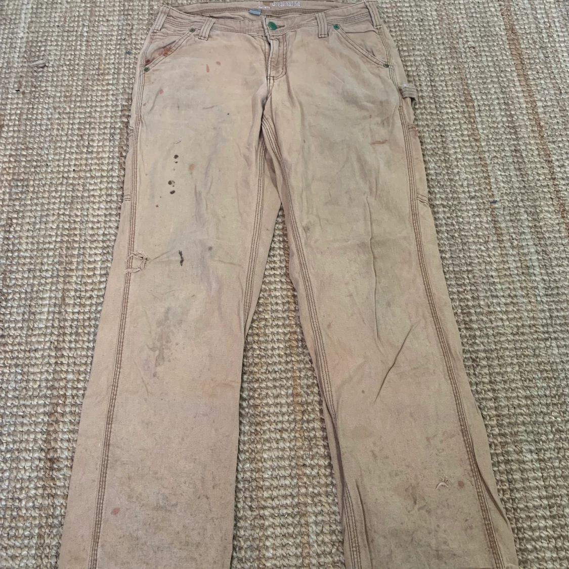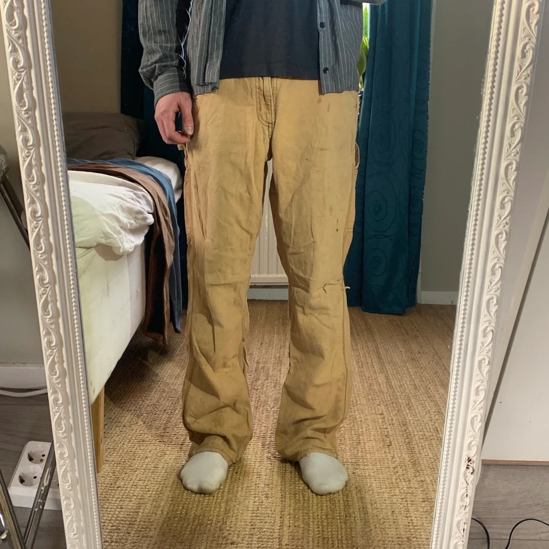 Ett par feta carhartt byxor. Gillar att dem är slitna på ett sätt som gör att man verkligen får en vintage känsla, bara att skriva för fler bilder :) Ytterben 97,5cm Benöppning 23cm