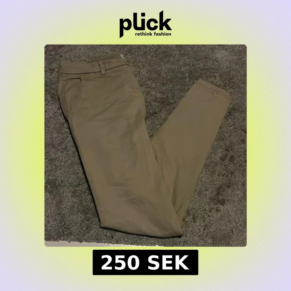 Snygga beige chinos från Lindbergh med en klassisk design. Byxorna har en knapp och dragkedja framtill samt hällor för bälte. Perfekta för en stilren look på sommaren. Storlek 32/30. Byxorna har en liten fläck längst ner på byxbenet och jag vet inte om det går bort i tvätten. Hör av er om ni har några frågor och priset är såklart inte hugget i sten