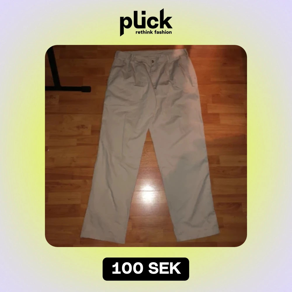 Vita tygbyxor/chinosđ Bra anvĂ€nt skick. Inte anvĂ€nda pĂ„ lĂ€nge. Slitna lĂ€ngst ner pĂ„ benen. Sitter oversized.