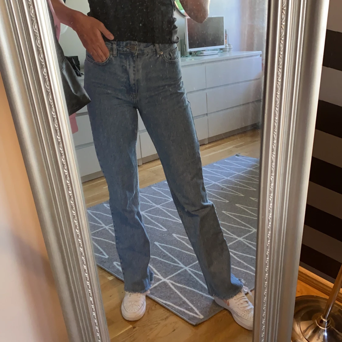 Ett par jeans som är sparsamt använda, inga defekter. Så här sitter de på mig som är 172 lång! Original pris: 499kr