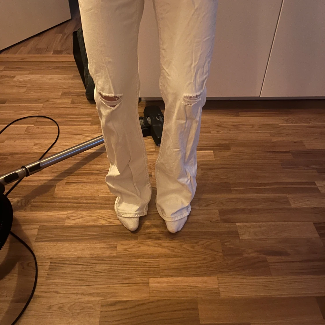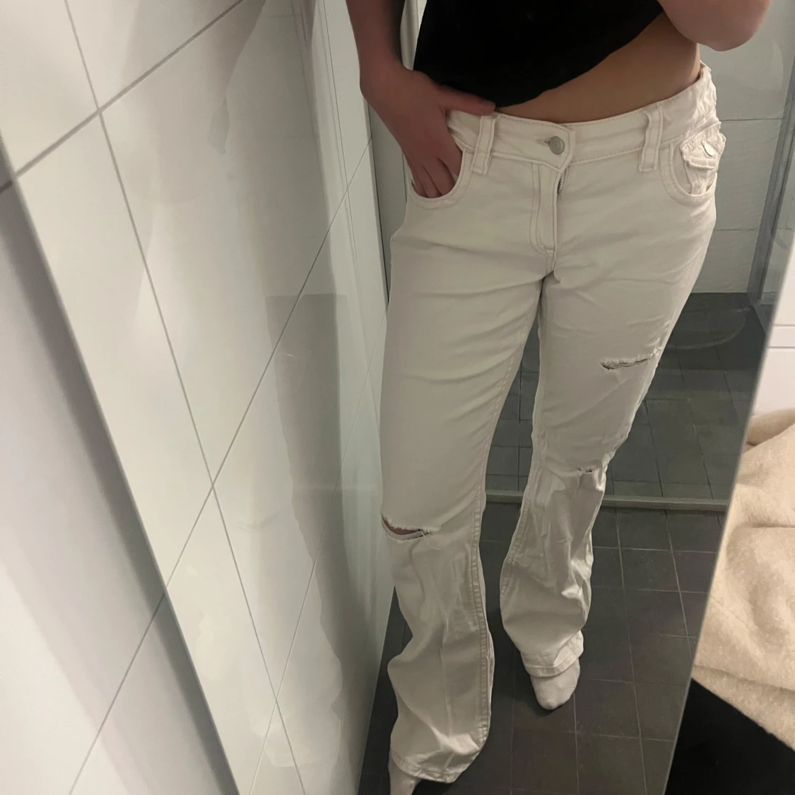 Säljer ett par vita jeans från Gina tricot young. Modellen heter Chunky low waist flare jeans. Dessa är i strl 170 men jag som brukar ha S i jeans kan ha dom.