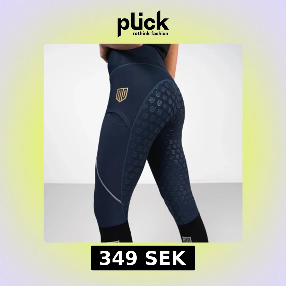 Snygga blå ridbyxor med gulddetaljer och ett modernt mönster. Byxorna har en tight passform och är perfekta för ridning. De är designade för att ge både stil och funktionalitet.