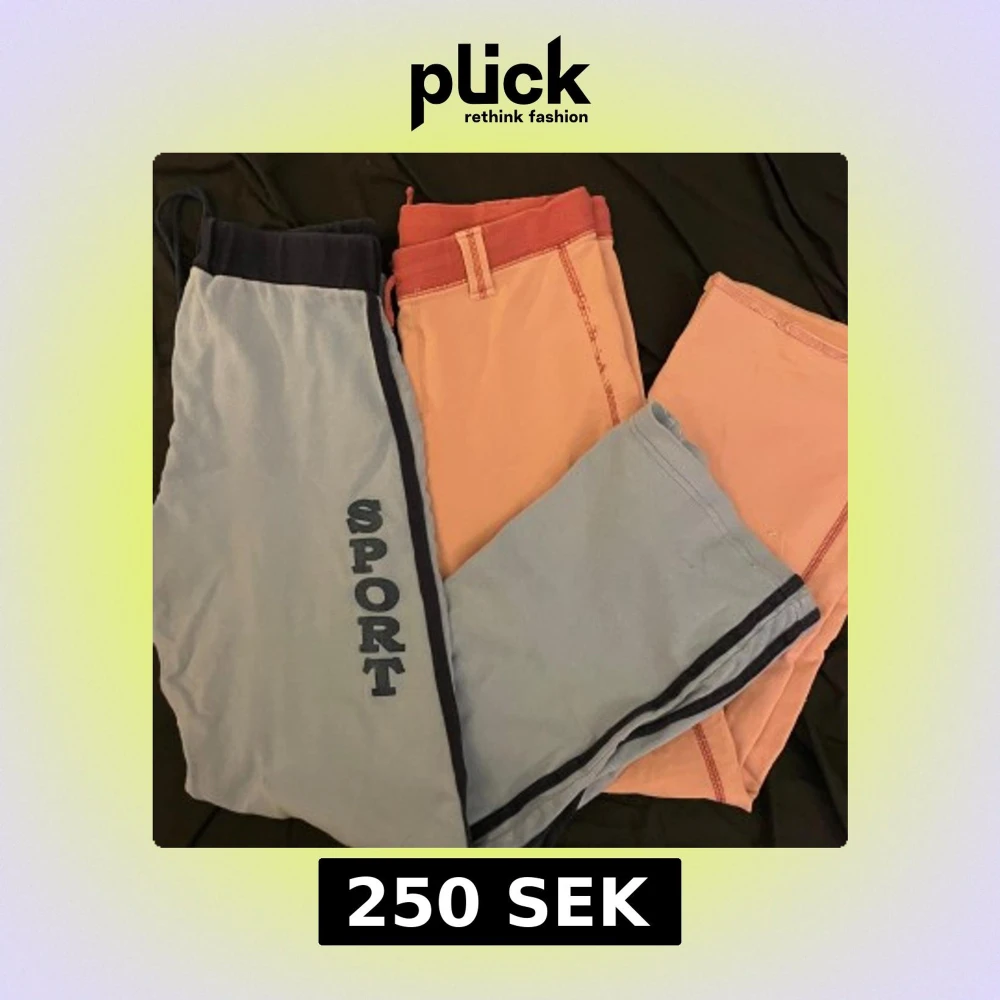 De rosa kommer från H&M och har storlek 130-140 och de blåa har inget märke, men skulle säga att båda är i storlek xs. Kan säljas separat💕