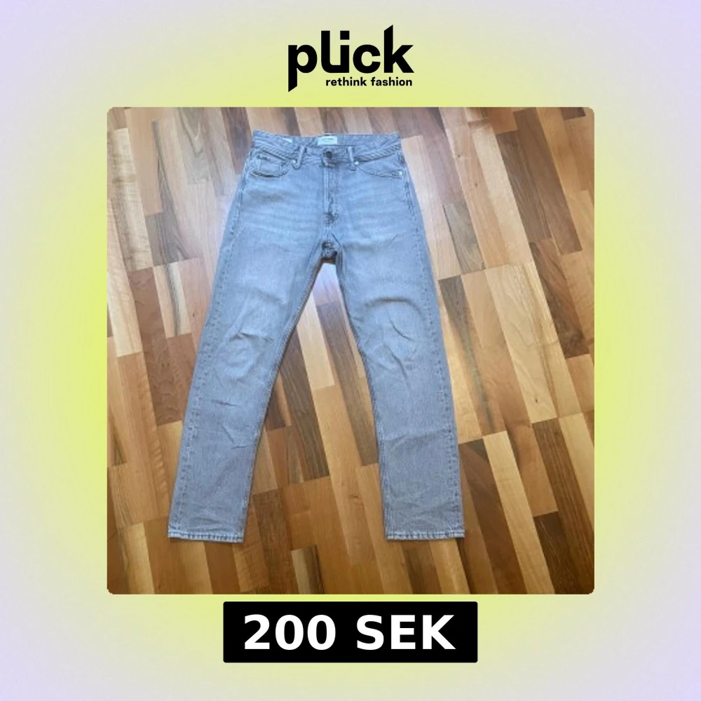 Säljer ett par gråa jeans ifrån Jack&jones med loose passform och fem fickor. Jeansen har hög midja, knappgylf och är tillverkade i robust bomullsdenim. Perfekta för en clean och tidlös look. Skriv om ni vill se fler bilder/se hur de ser ut på. Storleken är 29” i midjan och 32” på längden