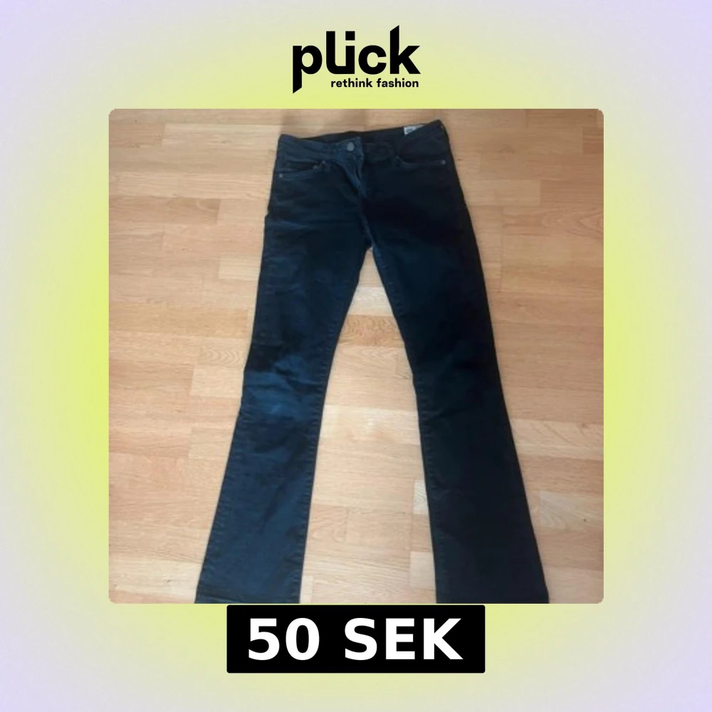 Svarta jeans från Crocker. bootcut-ben och normal passform. Snygga svarta jeans som passar perfekt till sneakers eller boots. De är nerlagda i benen men eftersom att dem ör svarta så stns det knappt, älskar de men har massa andra så några behövde rensas bort🥰