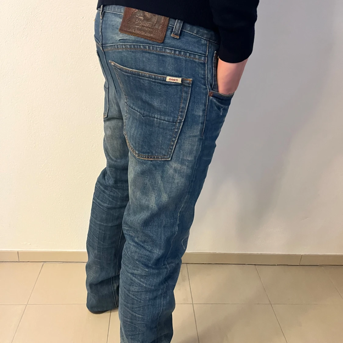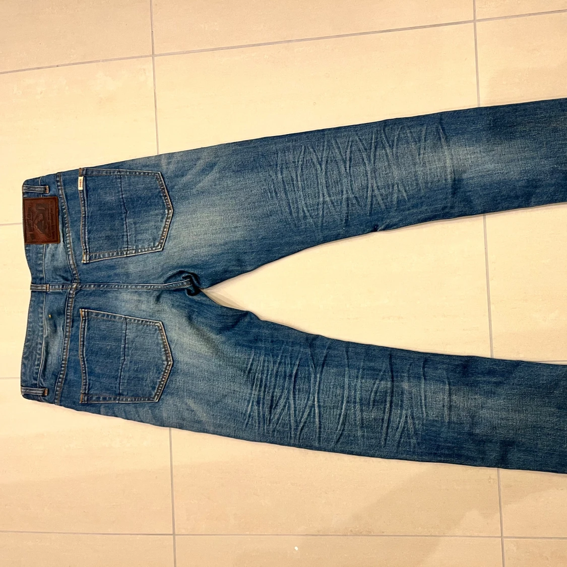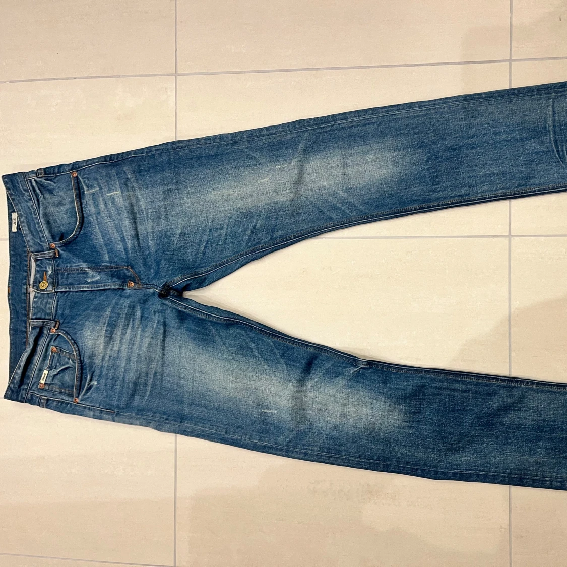Galet feta blå jeans från Emmett med en vintage look och en bekväm passform. Byxorna har en lätt tvättad look med subtila slitningar och en läderpatch med logotyp på baksidan. Perfekta för en avslappnad stil, klassisk stil, fest klädsel 🙌🤙🍾