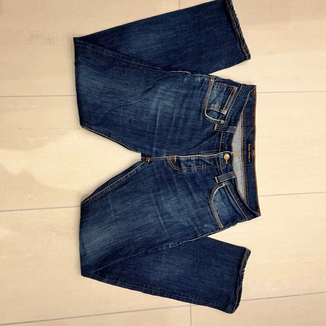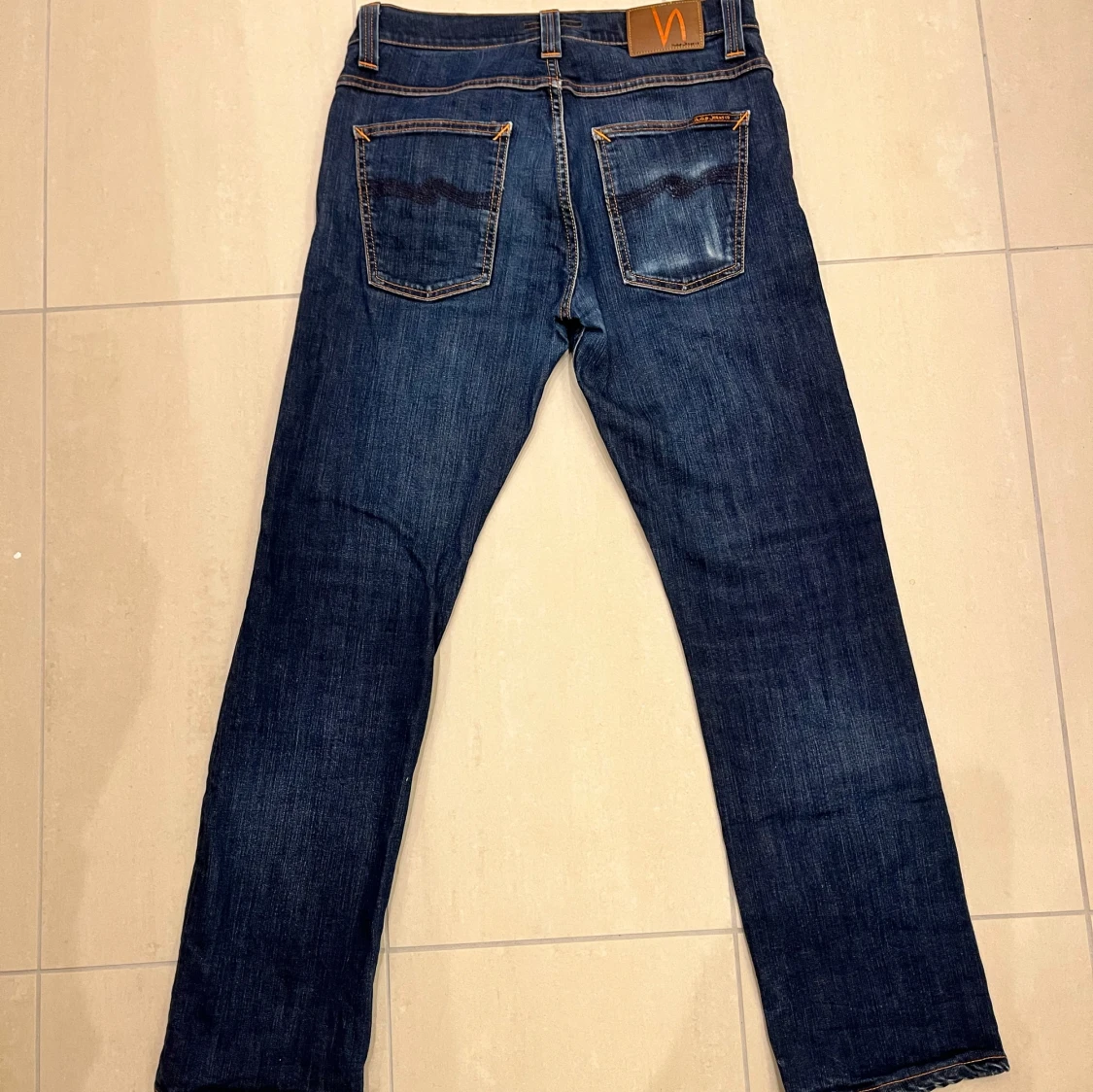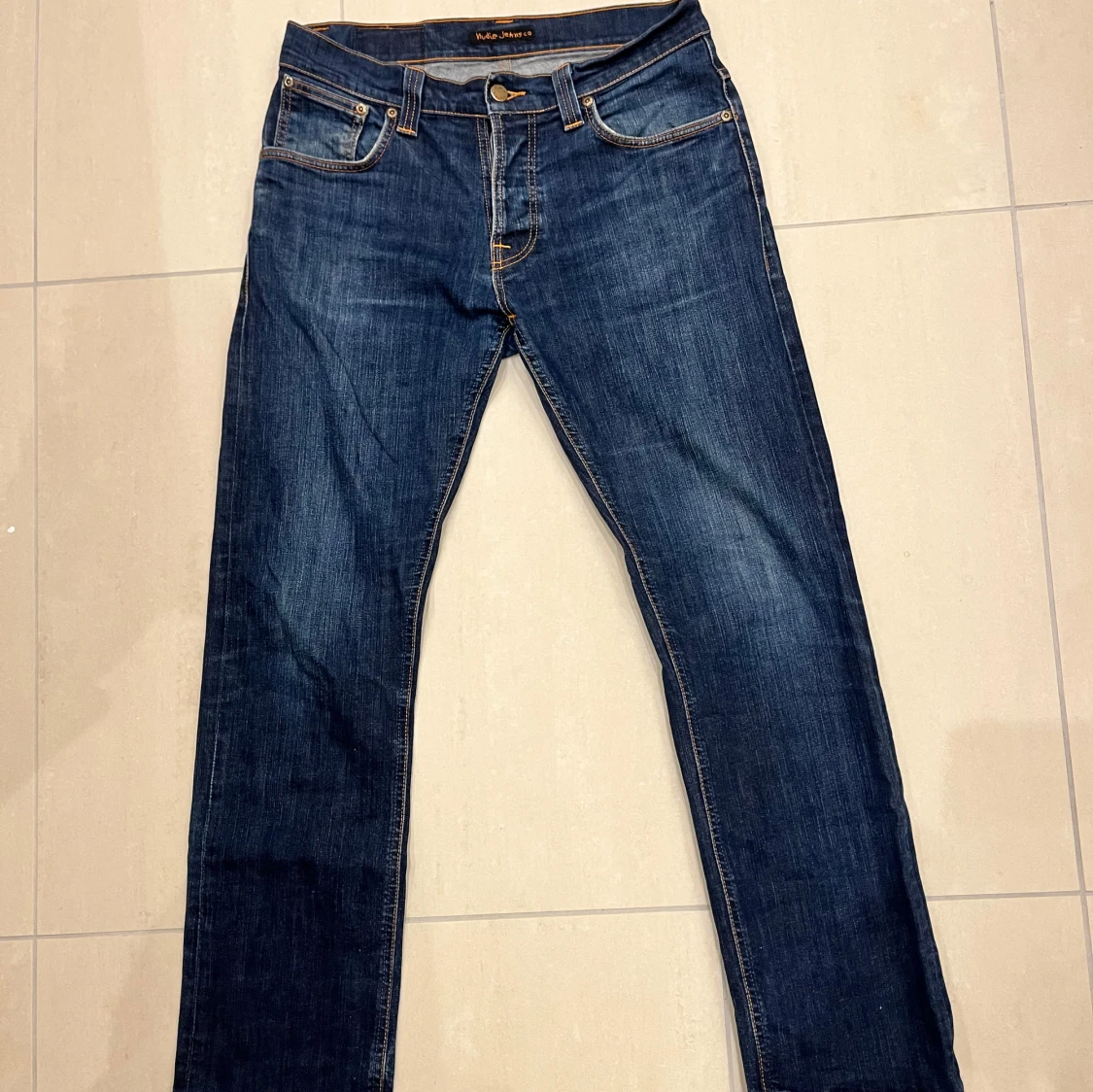 Riktigt snygga mörkblå jeans från Nudie Jeans som visar på en stilren look. Jeansen har använts sparsamt men ändå fått den här mer vintage utseendet som visar tecken på att den åldras väl. Perfekta för en dag i skolan eller till en utekväll med kompisarna🤙🤩W33 L32.