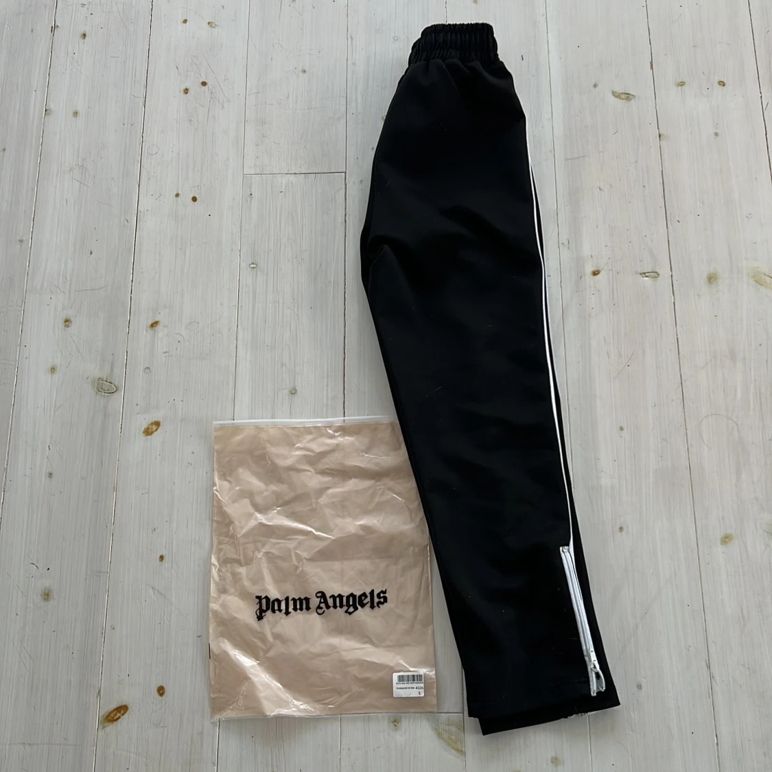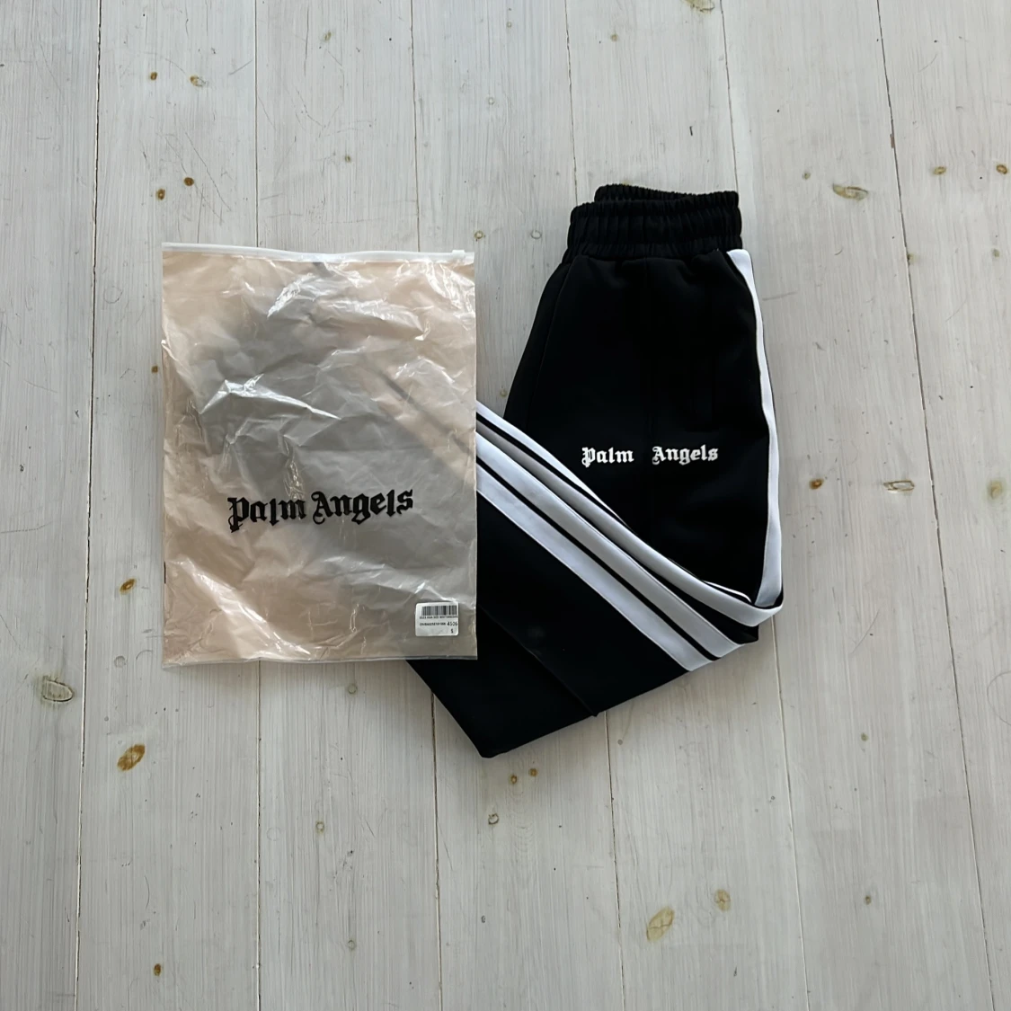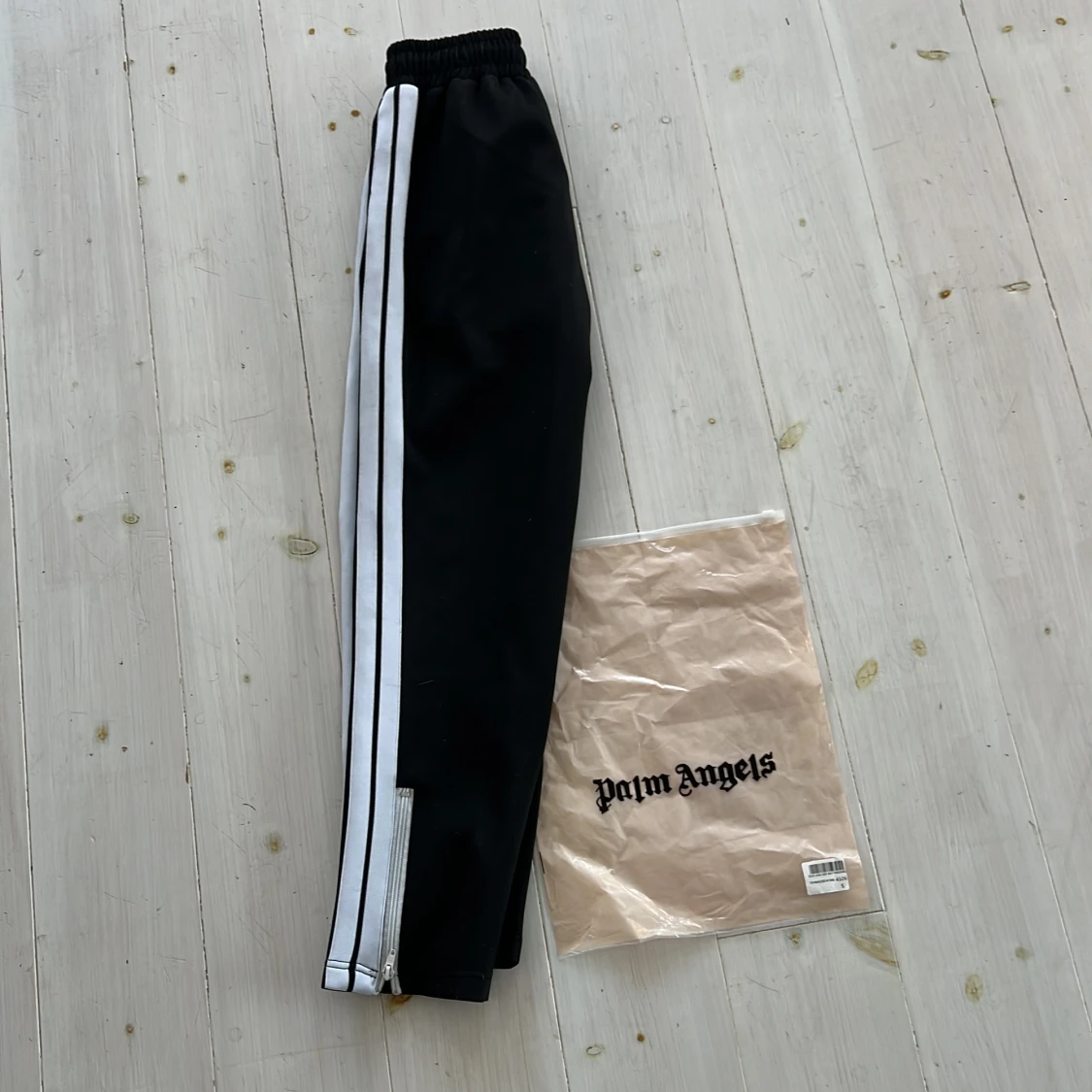 Säljer ett par svarta byxor från Palm angels. Passar dig som är runt 175-185! Perfekt nu för hösten och vintern. Kommer med originalförpackning. En liten defekt som ni ser på sista bilden men inte något som syns när man bär dom! Kom med frågor om ni undrar något! Garanterar ej äkthetskap då jag köpte de här på plick därav priset!